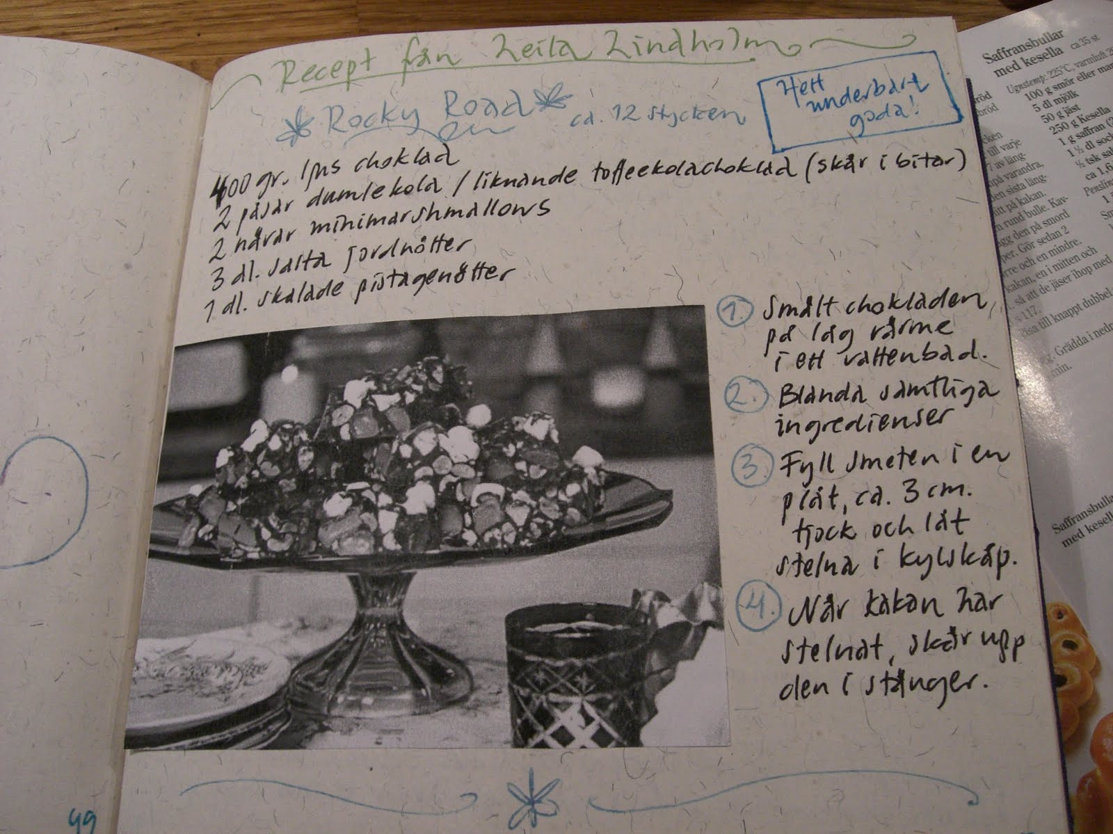 När jag var i Malaysia för ungefär en månad sedan köpte jag en choklad som hette Rocky Road. Den var god, men den Rocky Road som jag har gjort idag är helt klart mycket godare. Den är smaskig att äta som julgodis.