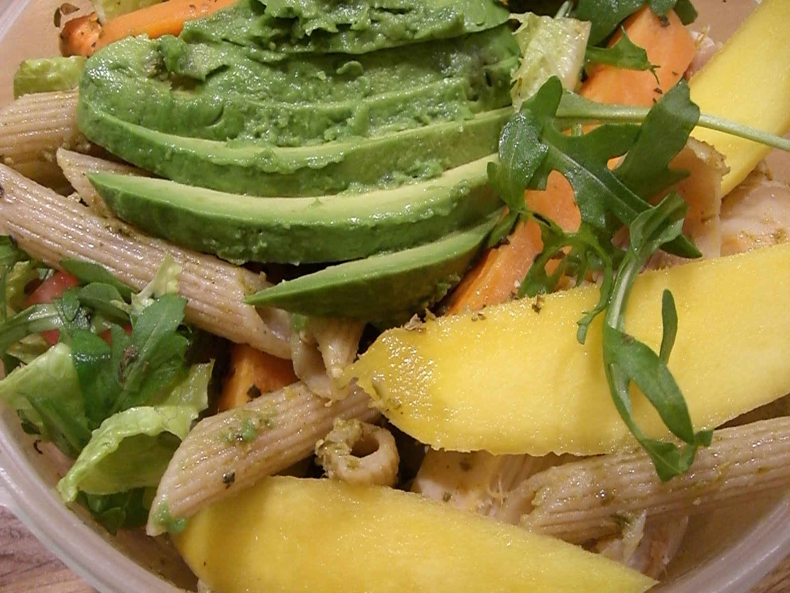 Pastasallad med kyckling, mango och avokado – att äta till lunch