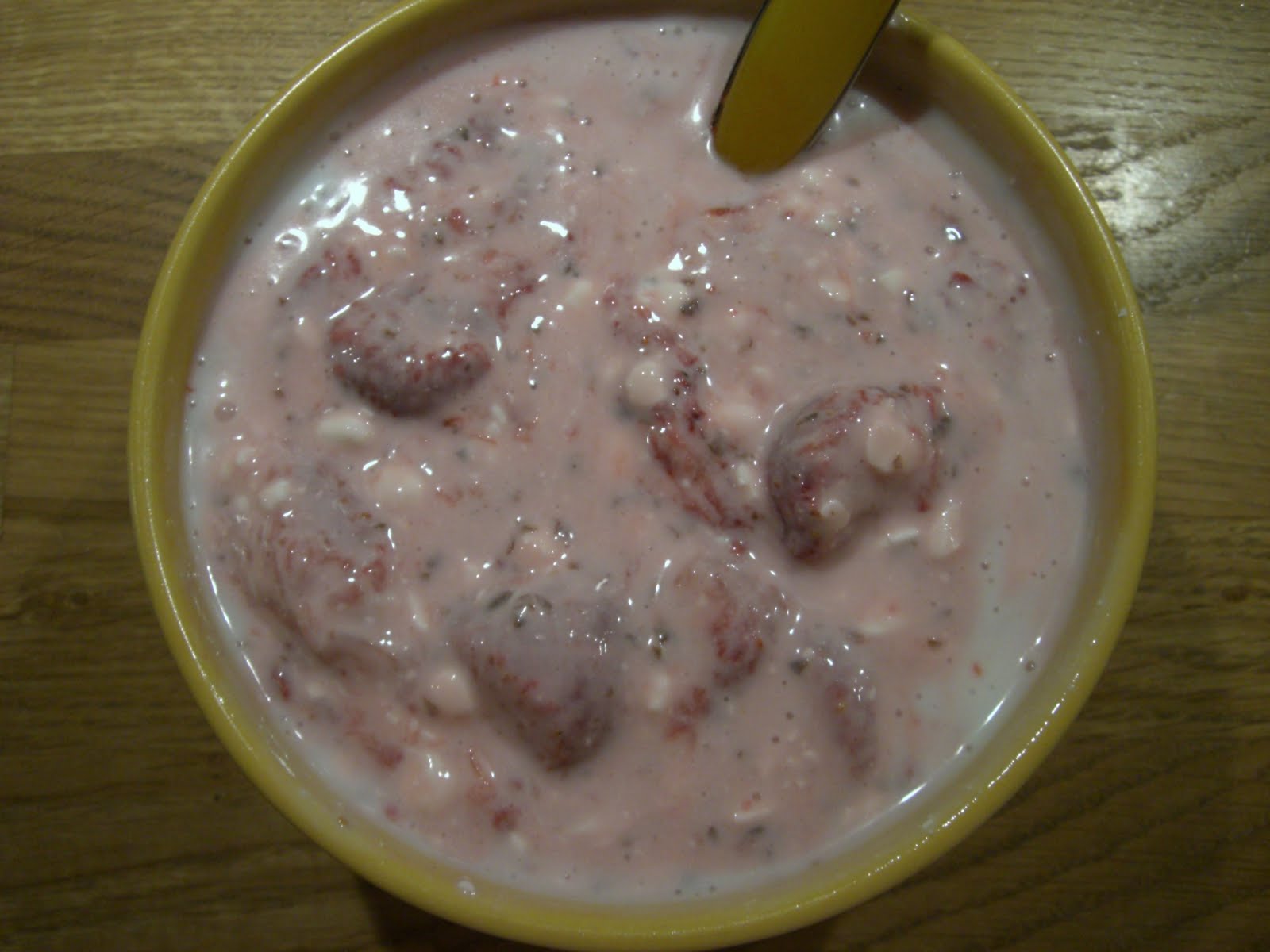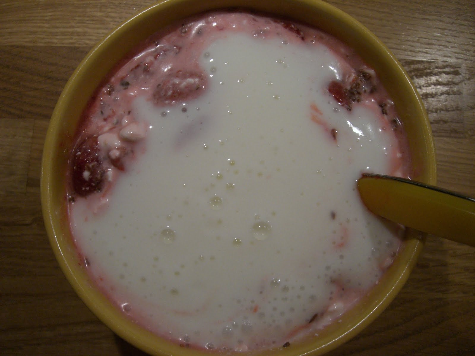 Ja visst är det gott och perfekt före sänggående! Mumsigt med jordgubbar i! 🙂