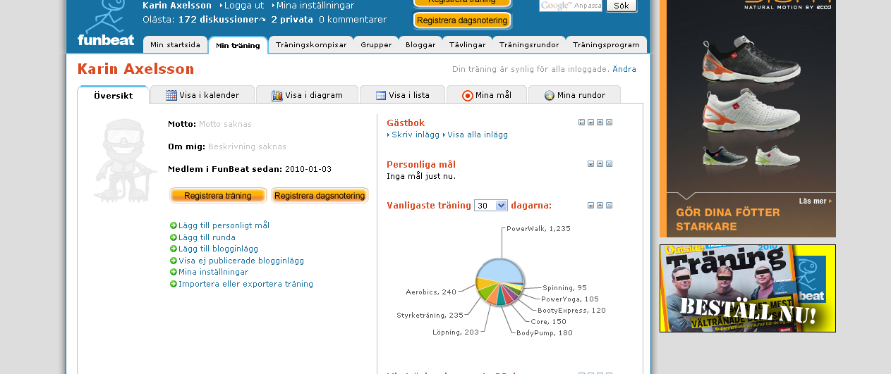 Skärmdumpen nedanför på höger sida visar en översikt för min träning de senaste 30 dagarna.