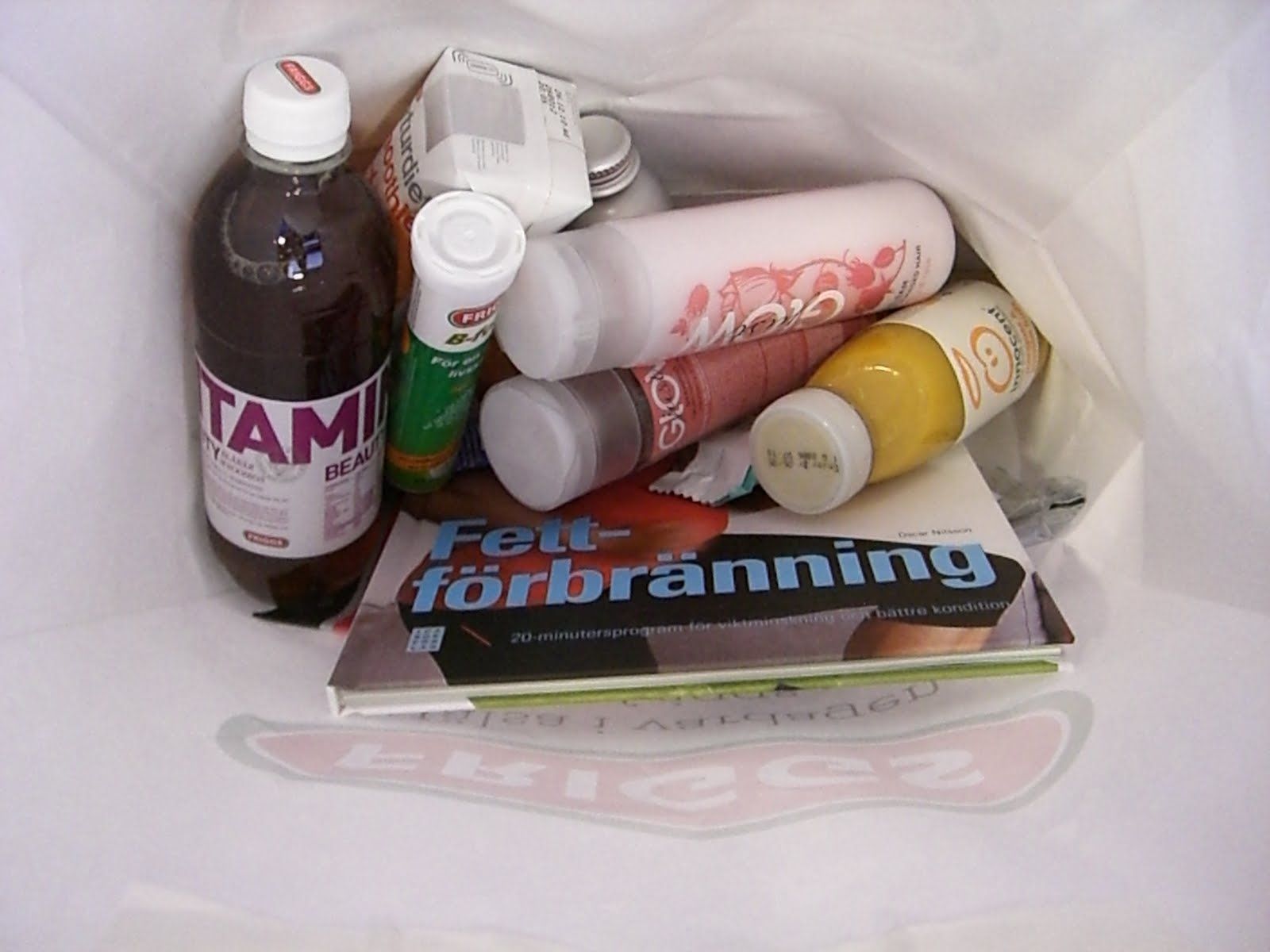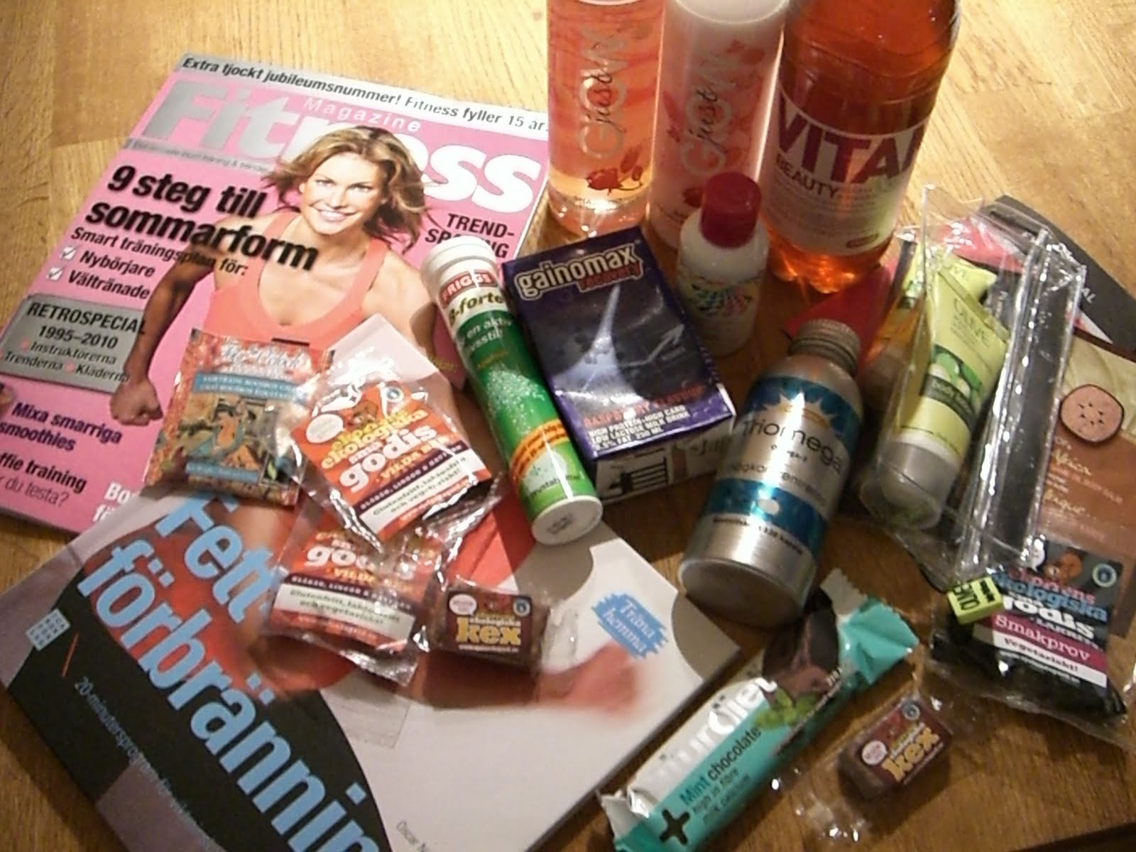 En annan höjdpunkt var den välfyllda goodiebag som vi fick. Här ser ni det mesta av det som fanns i goodiebagen. Lite av innehållet har jag redan hunnit äta eller dricka upp… Dessutom fick vi en fin löparjacka och en T-shirt.