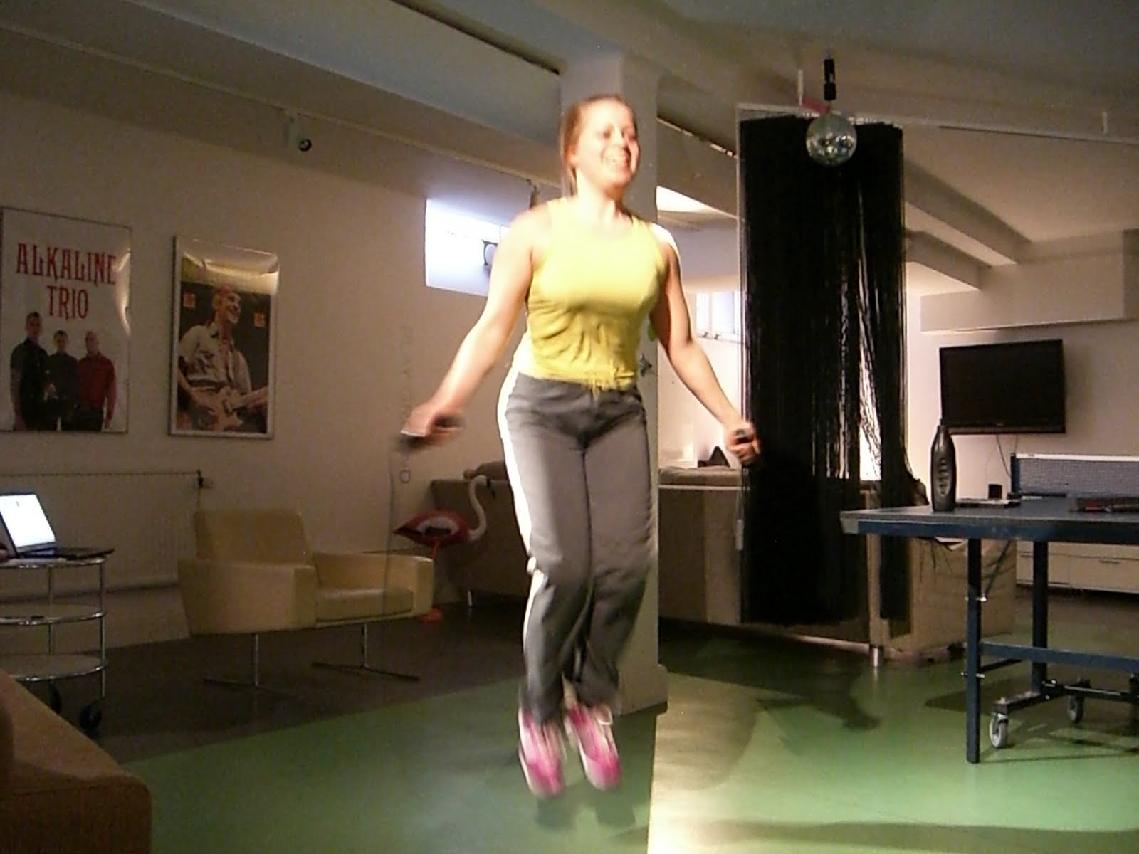 För att komma upp ordentligt i puls och träna min kondition ordentligt varvade jag aerobicsträningen med hopprepshoppning. Hopprep är grymt!