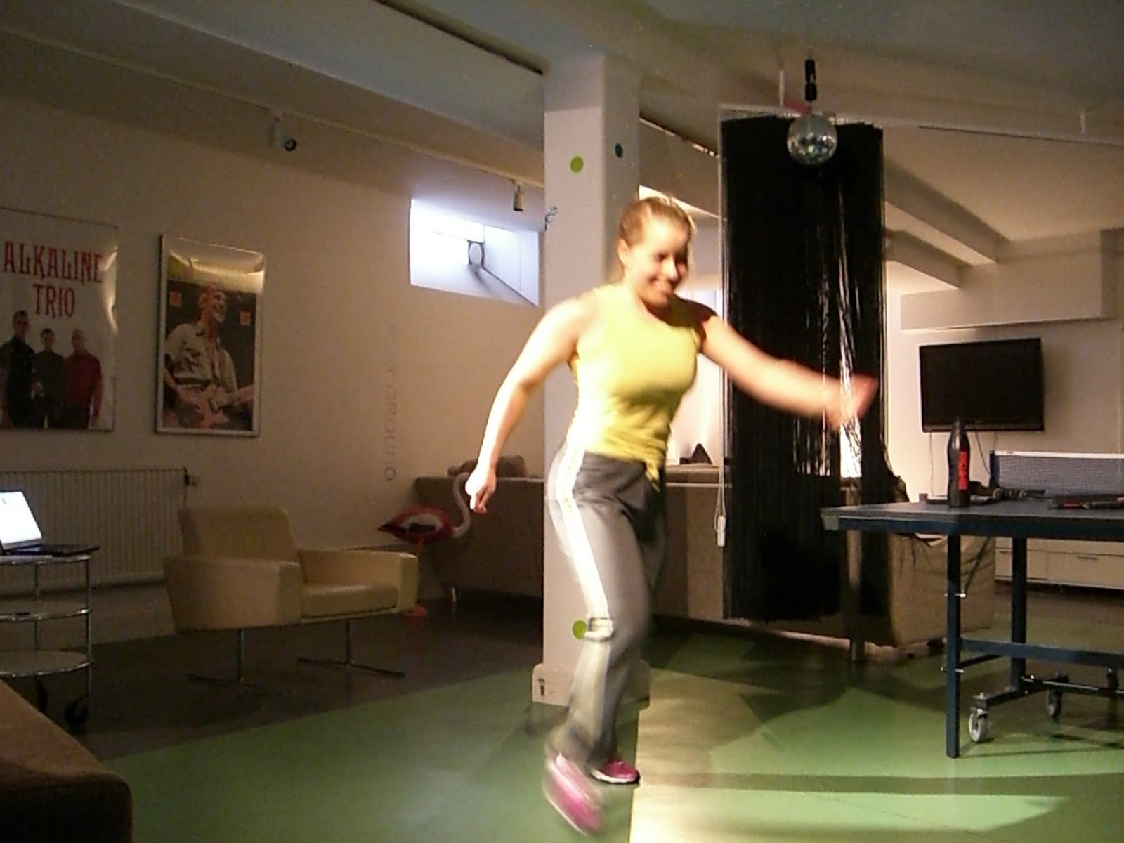 Jag tränade in lite nya steg till mitt aerobicspass nu på morgonen efter min promenad. Min träning skedde i källaren på jobbet. Där hoppade och studsade jag loss till bra musik. Det blev ett nytt block till min koreografi, so jag kommer köra imorgon med mina deltagare på World Class Sundbyberg.