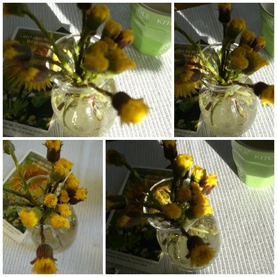 Igår plockade jag tussilago och idag på vägen hem från jobbet plockade jag vitsippor. Nu har vi två små vaser med dessa vackra blommor på vårt köksbord.