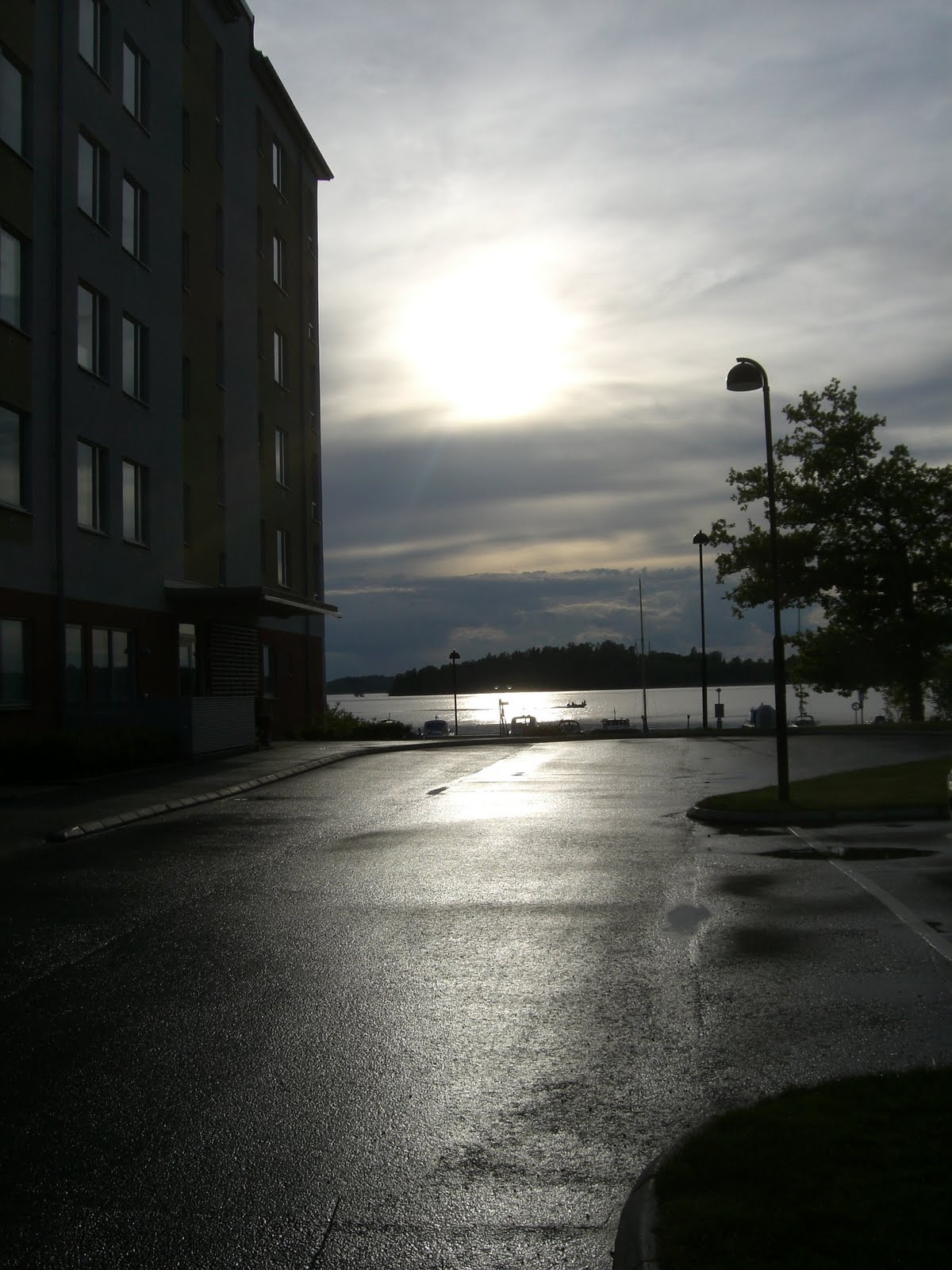 Det har tydligen regnat idag, vilket jag inte har märkt av då jag har suttit inne på kontoret hela dagen. Solen som skiner på himlen nu ikväll visar verkligen på att efter regn kommer solsken. Det var så vackert att se hur solen lyste tappert bakom molnen och glänste i vattenpölarna på marken.