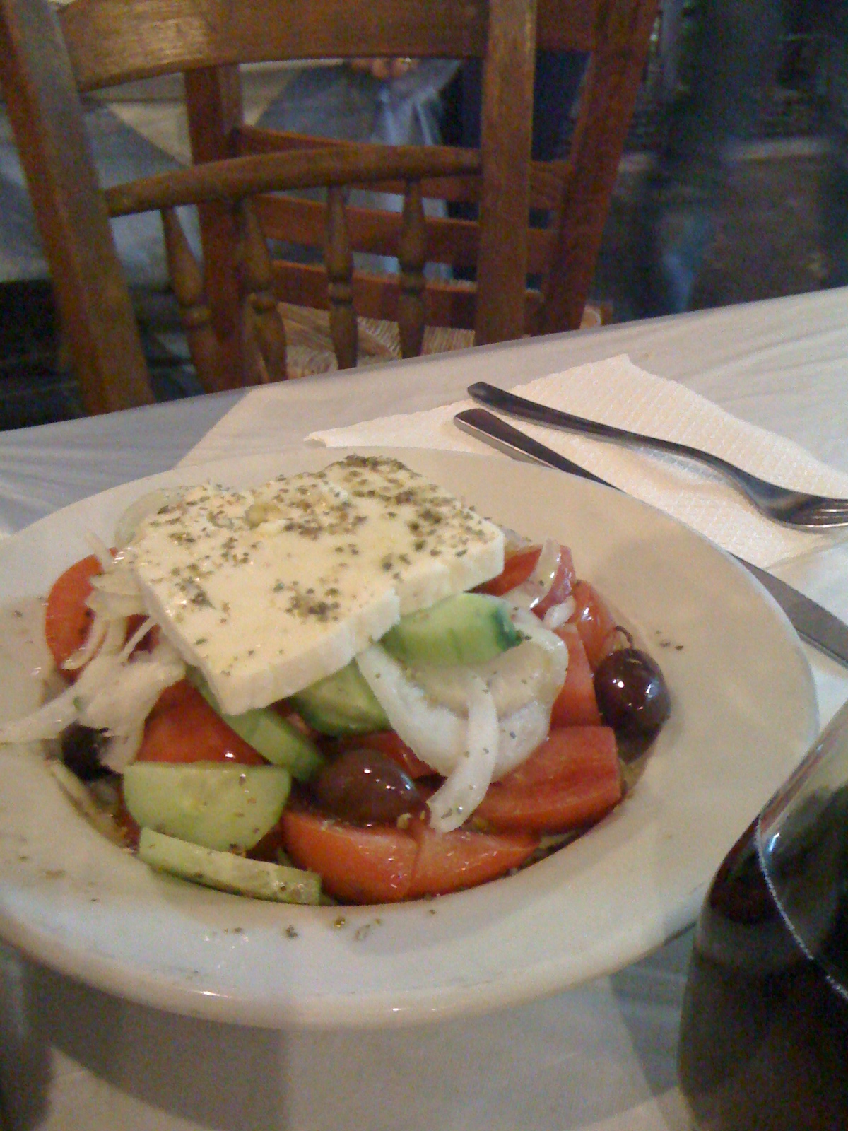 Vi åt vår middag på en typisk grekisk restaurang ikväll. Vi ville göra det då det känns som att maten är godare och stämningen trevligare och genuinare på sådana ställen. Jag åt kyckling och vi delade alla fyra på en grekisk sallad.