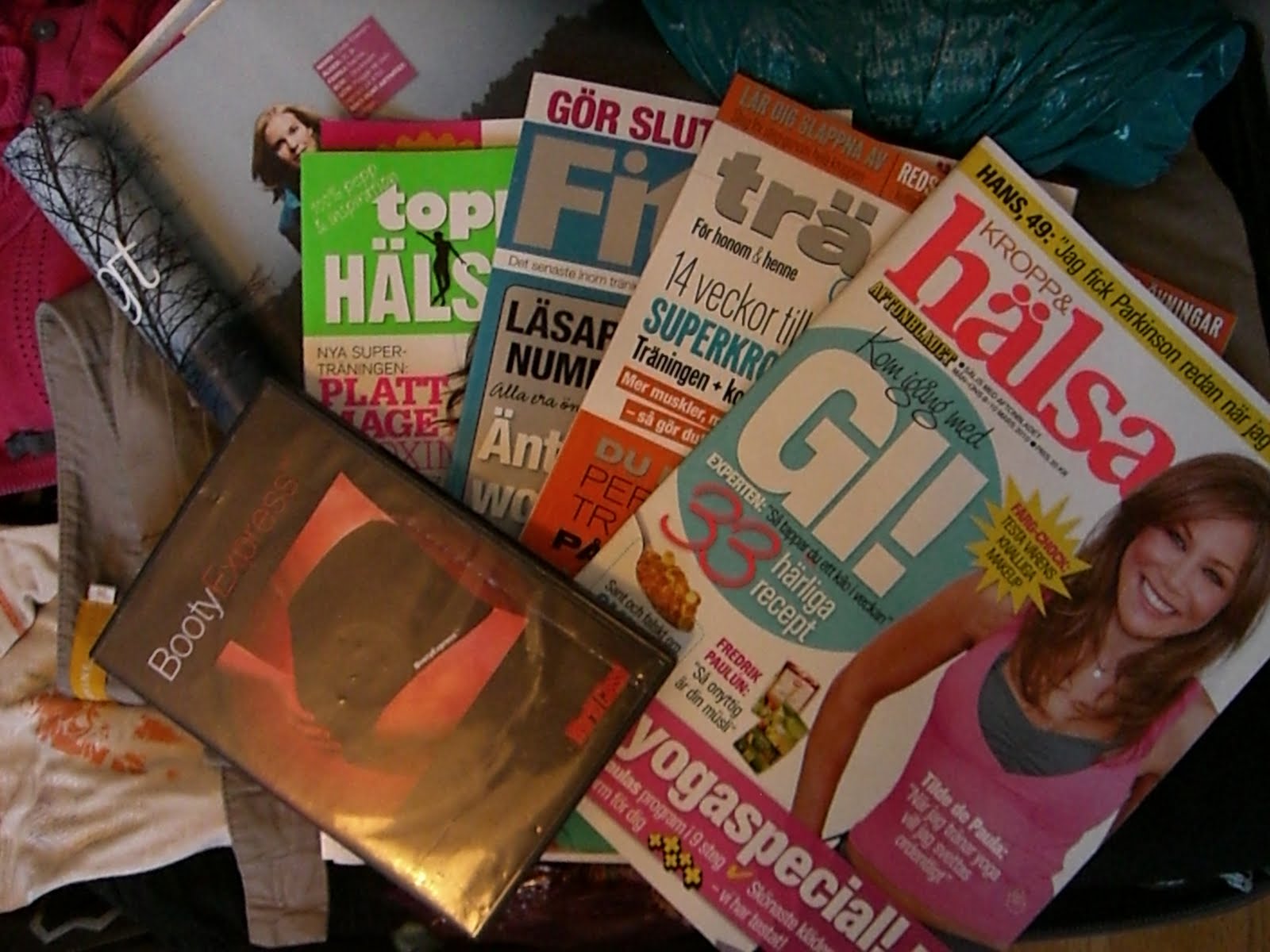 Jag packar med träningstidningar att läsa när det finns tid över. Som vanligt ligger jag efter med läsandet av mina favorit tidningar Fitness Magazine och ToppHälsa, men kanske att jag hinner i kapp lite bättre i helgen. Jag packar även ner gummiband att träna med på hotellrummet och musiken till Booty- och Corepassen så jag kan köra den sortens träning också.