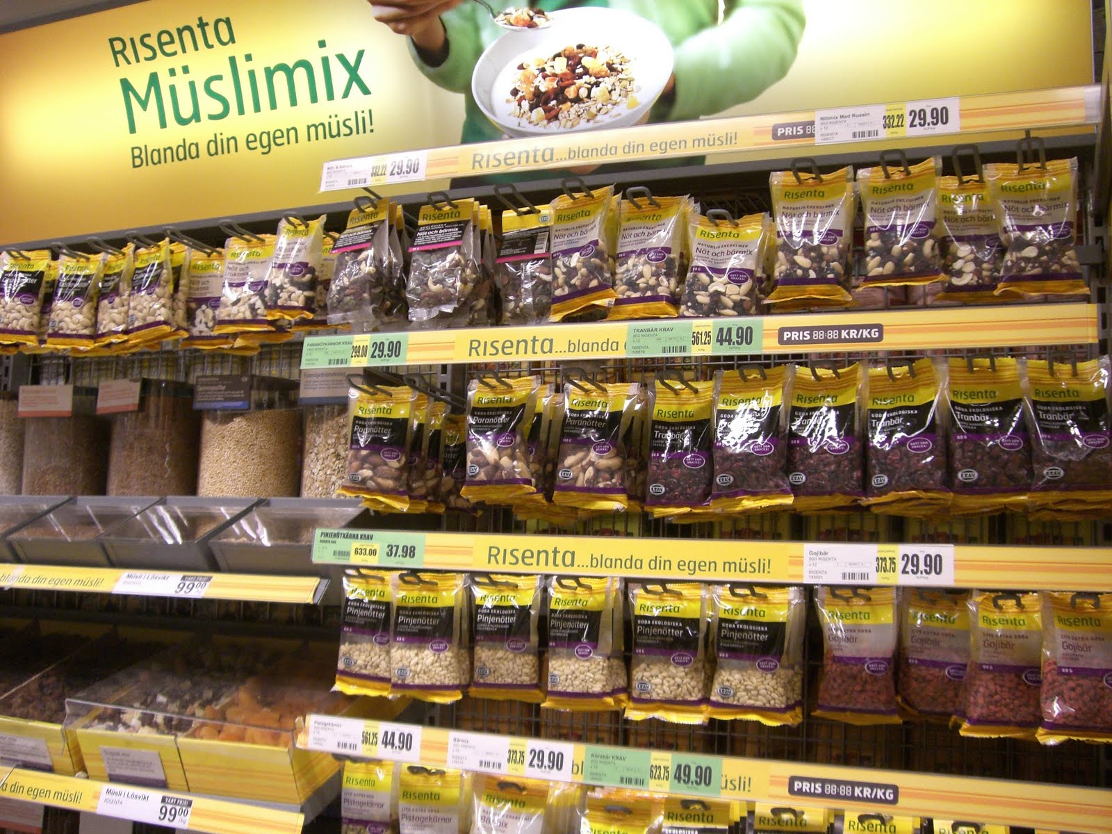 Jag blev lite sugen på att köpa hem några sorter för att blanda i min müsli, men eftersom jag just har gjort en stor sats av min müsli så lät jag bli. Detta är ett tips till er andra dock: Plocka på er av Risentas nyttiga lösviktssorter och blanda ihop din egna, nyttiga müsli.