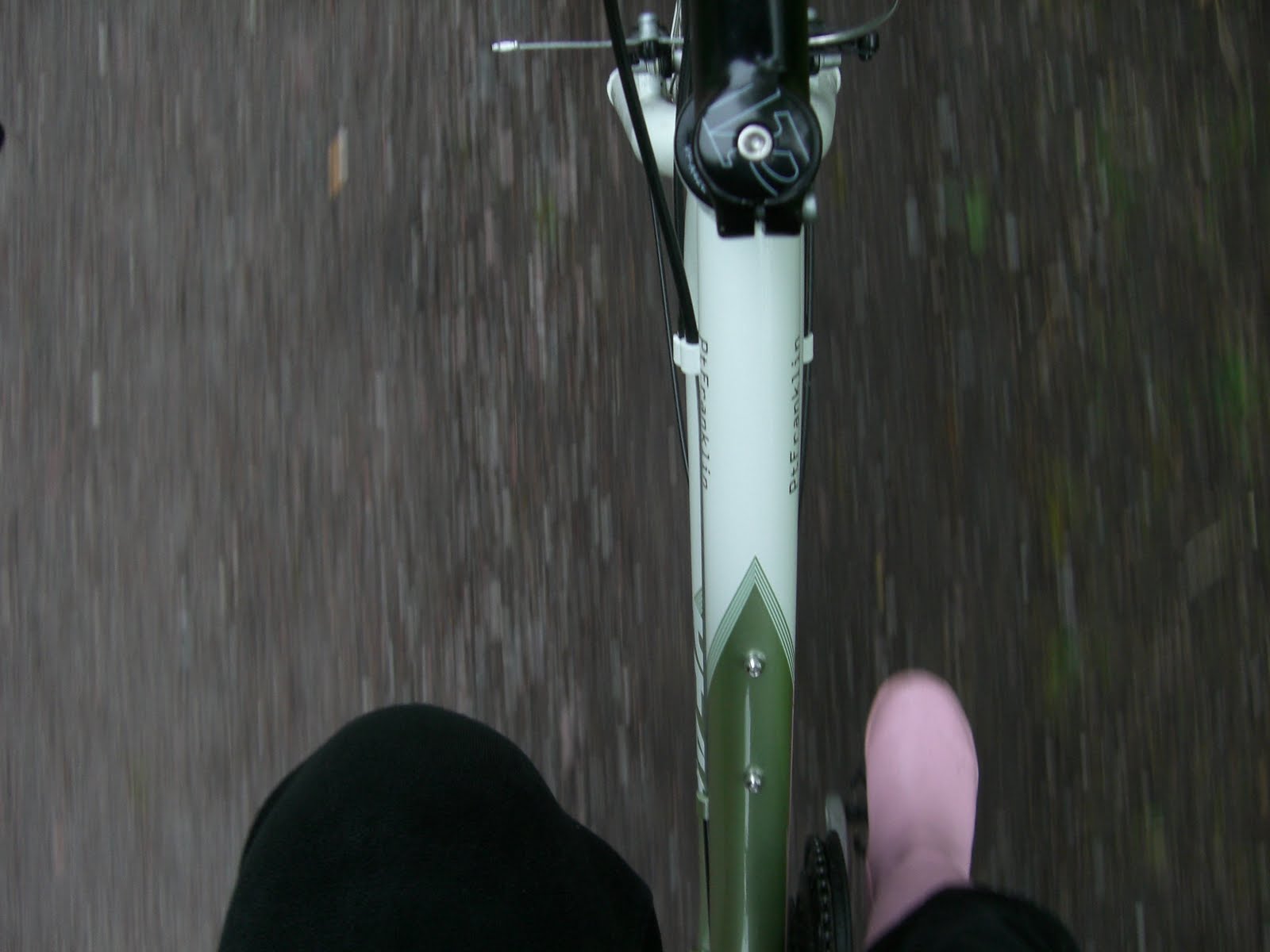 Jag klädde på mig regnjacka och gummistövlar för att vara rustad för det regnväder vi har idag. Luften var frisk och skön och jag blev definitivt uppiggad av cykelturen. Det duggade lite och jag lyckades slipa de värsta regnskurarna. Däremot blåste det rejält på vägen hem så jag fick trampa på ordentligt för att komma någonstans.