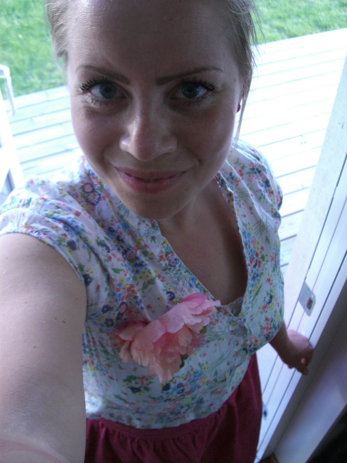 Fastän klockan är över åtta på kvällen är det soligt och ljust ute. När jag gick hem nu ikväll sken solen fortfarande väldigt starkt. Det är ren och skär lycka för mig att få njuta av denna underbara majsol, att kunna gå utomhus i bara kjol och blus, att få inandas alla härliga blomdofter och höra alla glada fågelkvitter.