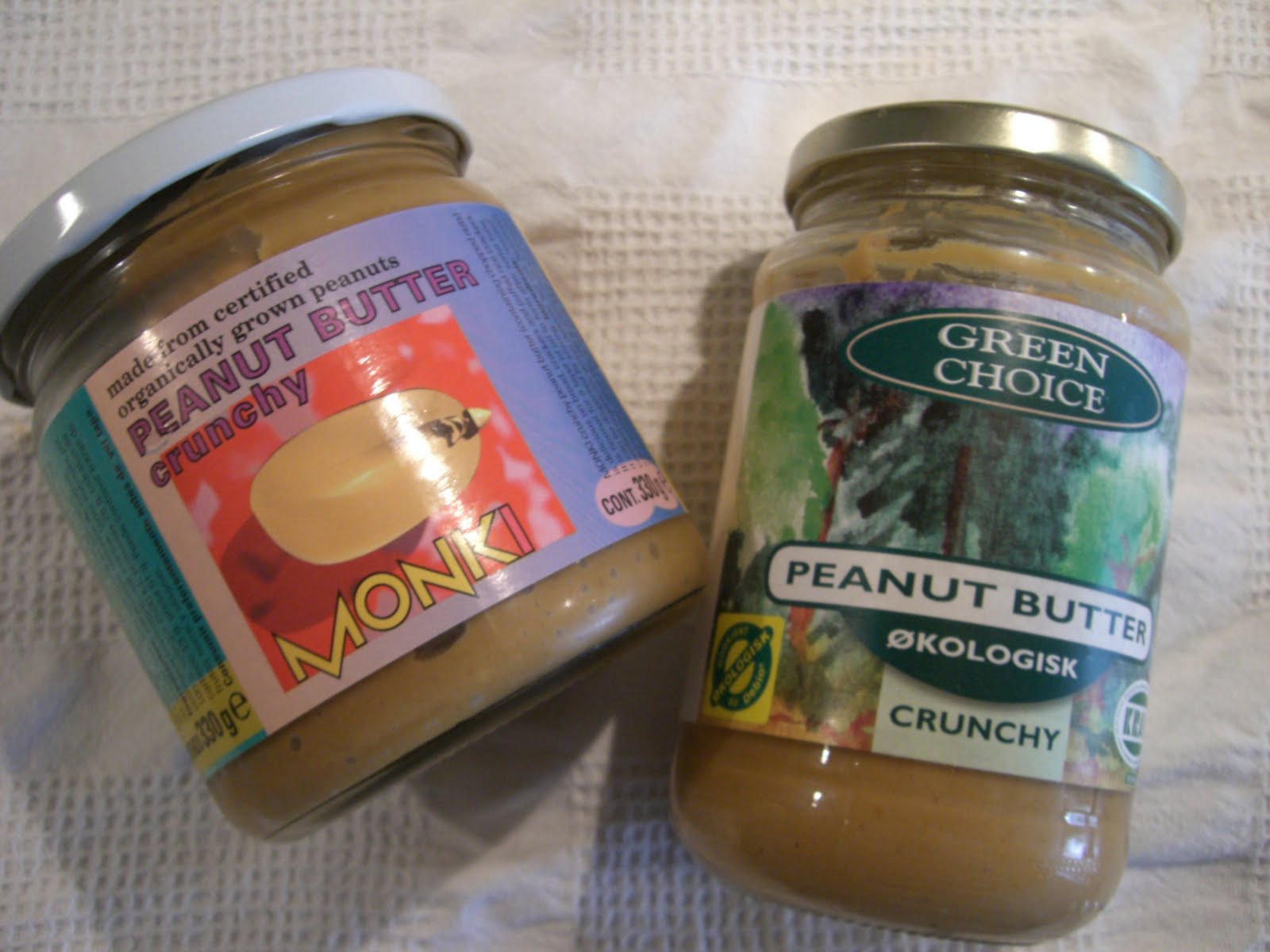 För några dagar sedan köpte jag en burk jordnötssmör av ett märke jag inte hade testat tidigare; MONKI jordnötssmör. Sedan tidigare hade jag en burk jordnötssmör av märket GREEN CHOICE hemma. När jag bakade proteinhavrebollar för en stund sedan, där jordnötssmör är en av ingredienserna, var jag tvungen att först göra ett smaktest.