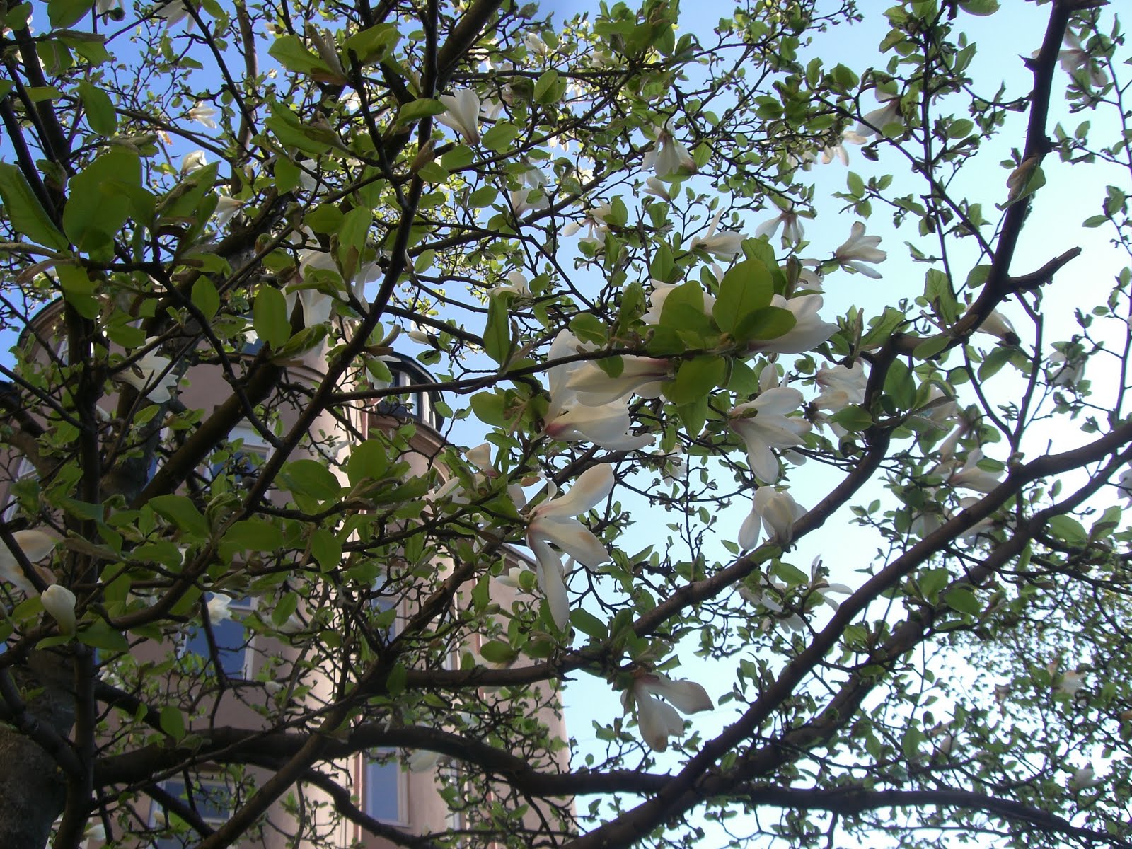 För 12 dagar sedan såg träden ovan ut så här. Då fanns det inte så många blommor på träden ännu, men nu de senaste dagarna har dessa träd verkligen slagit ut i blom. Underbart vackert!
