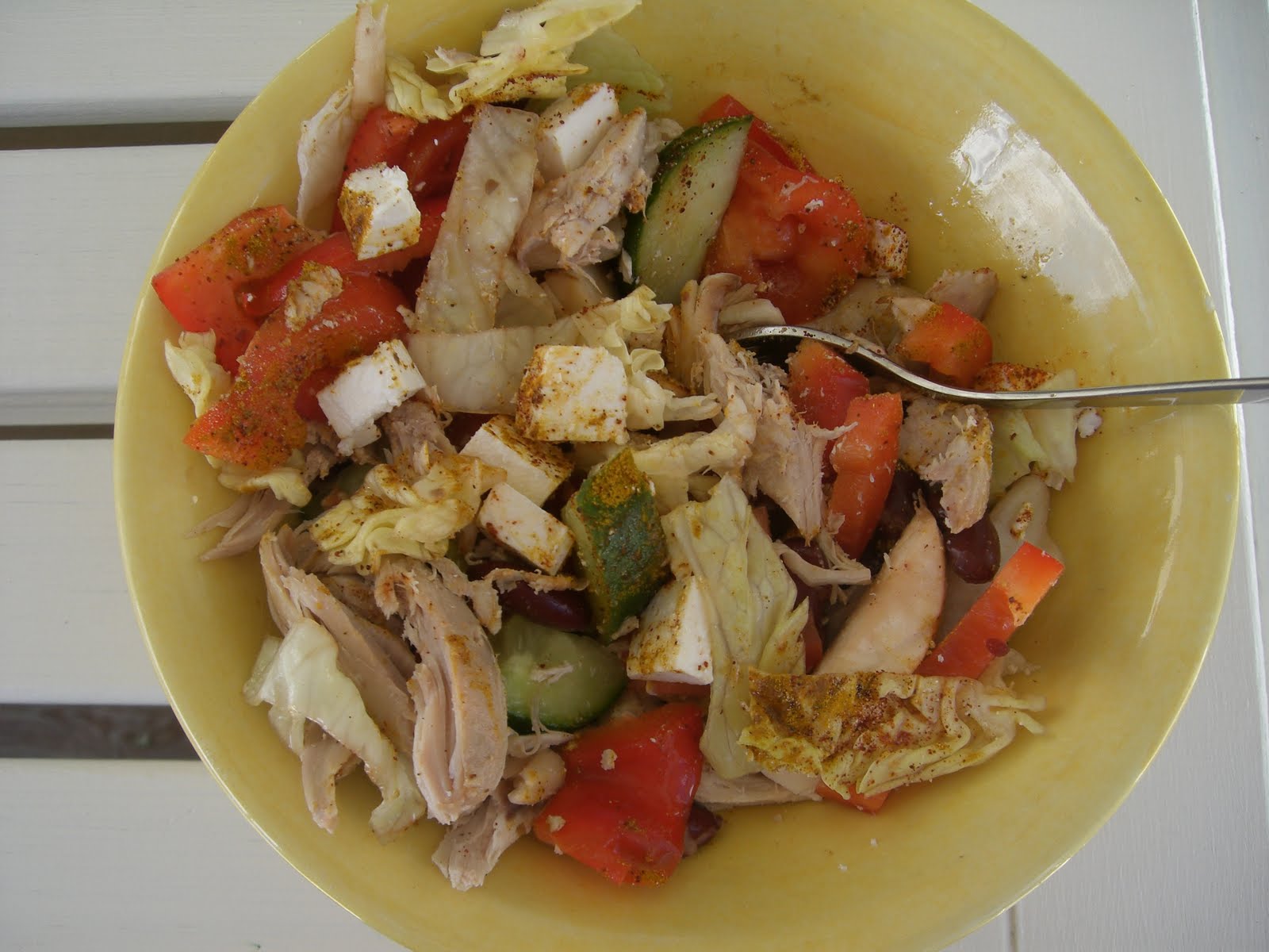 Alldeles nyss njöt jag av en god lunch bestående av kycklingsallad med bönor, fetaost, massor med goda grönsaker och kryddad med chili, curry och peppar. Vilken underbar kombination; soligt väder, god mat och en spännande en match att titta på! Heja Tyskland (förlåt syster Hanna och svåger Simon, som bor i England), för jag har mitt hjärta till viss del i Tyskland.