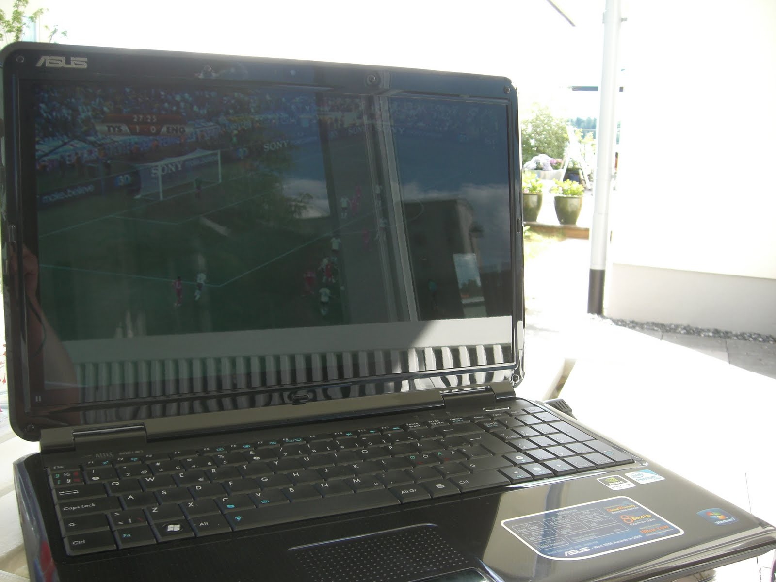 Idag är det strålande vackert väder här hemma. Vi njuter vår dag ute på altanen. Man vill ju inte gå miste om detta vackra väder en dag som denna. Man vill heller inte gå miste om när England och Tyskland spelar åttondelsfinal i fotbolls-VM 2010 i Sydafrika. Därför har vi placerat datorn i skuggan på altanen och ska snart titta p