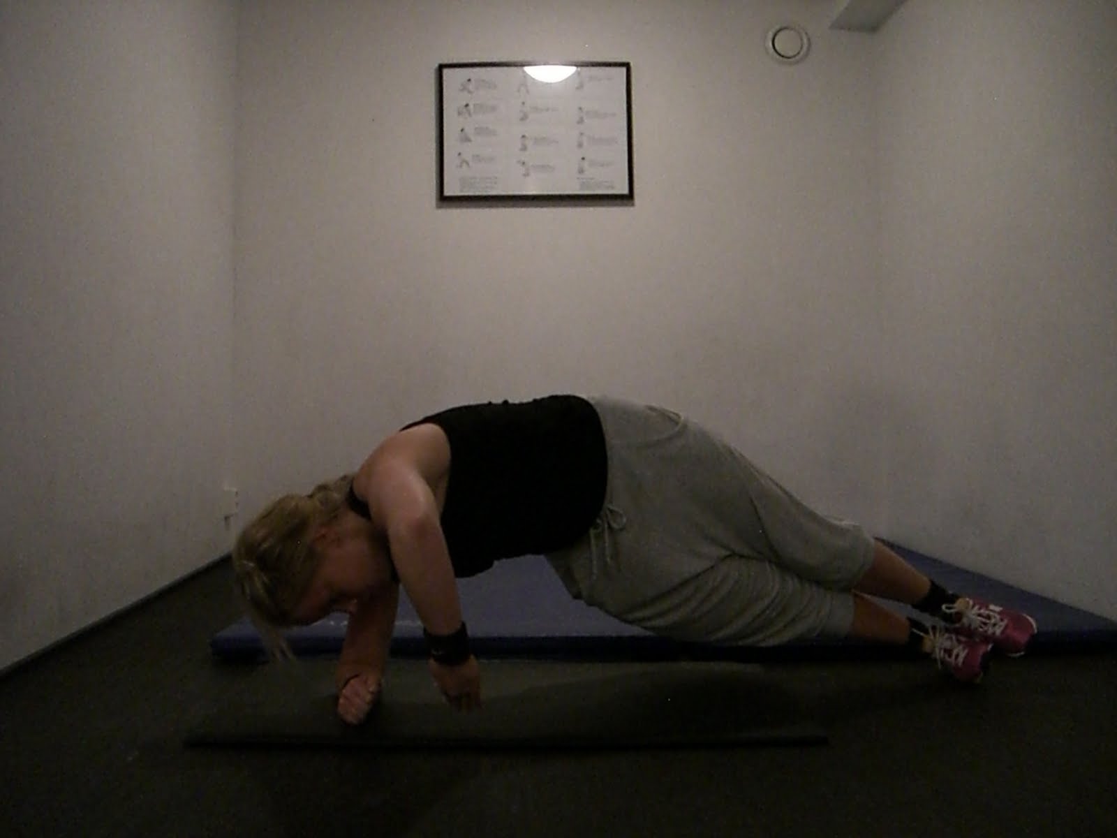 4) Sista bilden visar utgångspositionen i övningen, men på knä istället för på fötter.