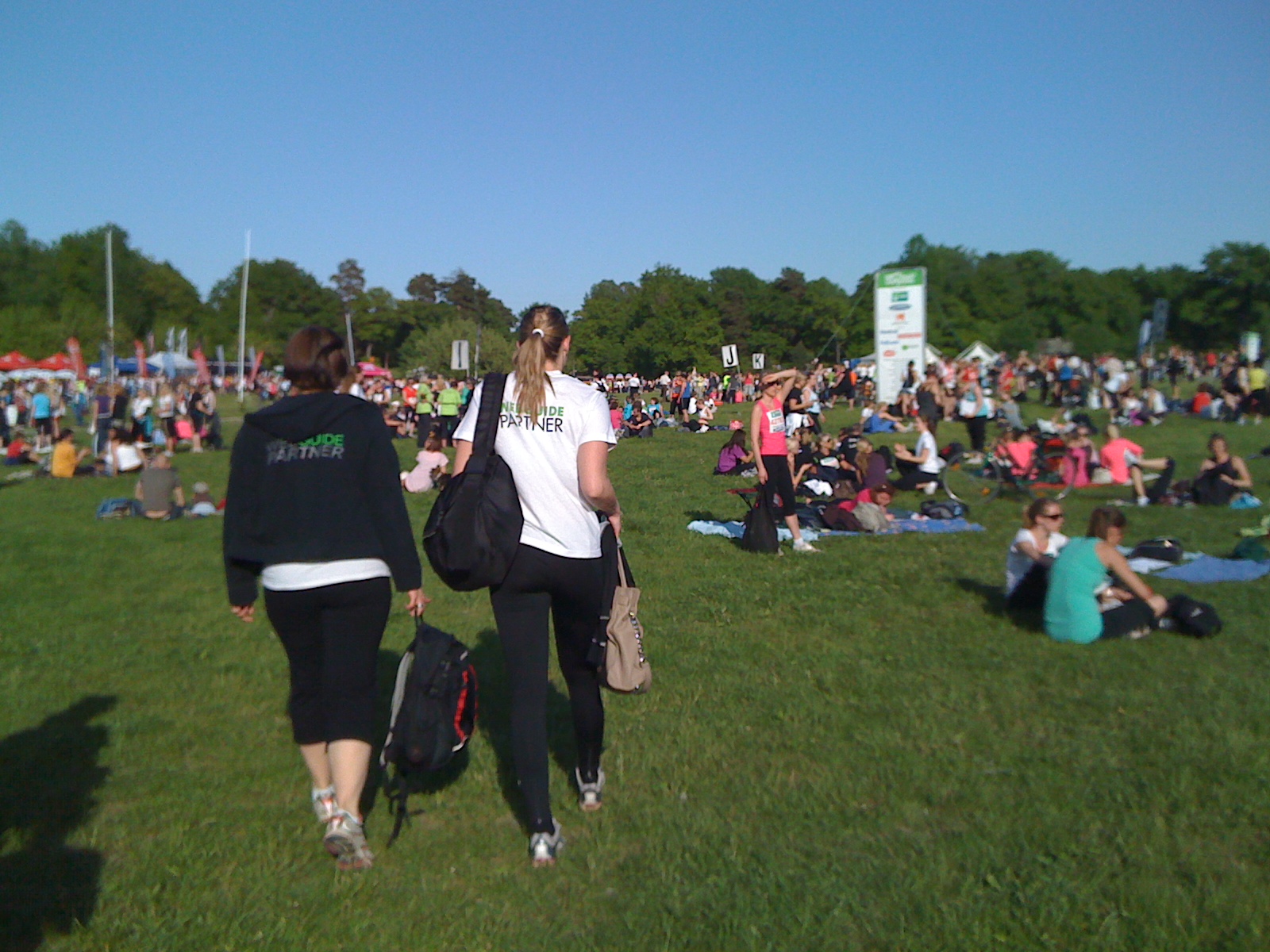 Vi lämnade vårt pick och pack vid några filtar på området innan vi begav oss till uppvärmningsområdet. Jag, Ullis och Maria hamnade i den grupp, som startade först. Så direkt efter uppvärmningen var vi bland de första som sprang iväg.