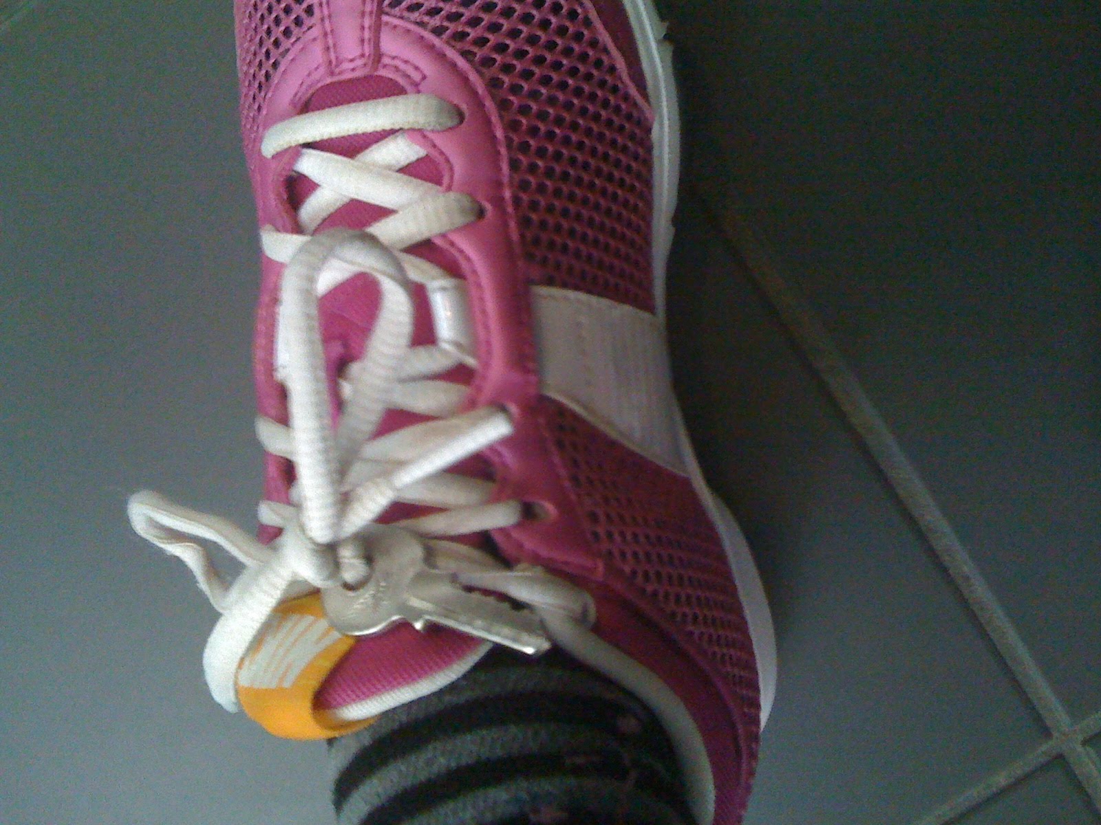 Idag hade jag inga bra fickor på träningsbyxorna att ha nyckeln till hänglåset i, så det fick bli att jag hängde nyckeln i skosnöret innan jag knöt det. Var brukar du göra av din hänglåsnyckel när du tränar på gymmet?