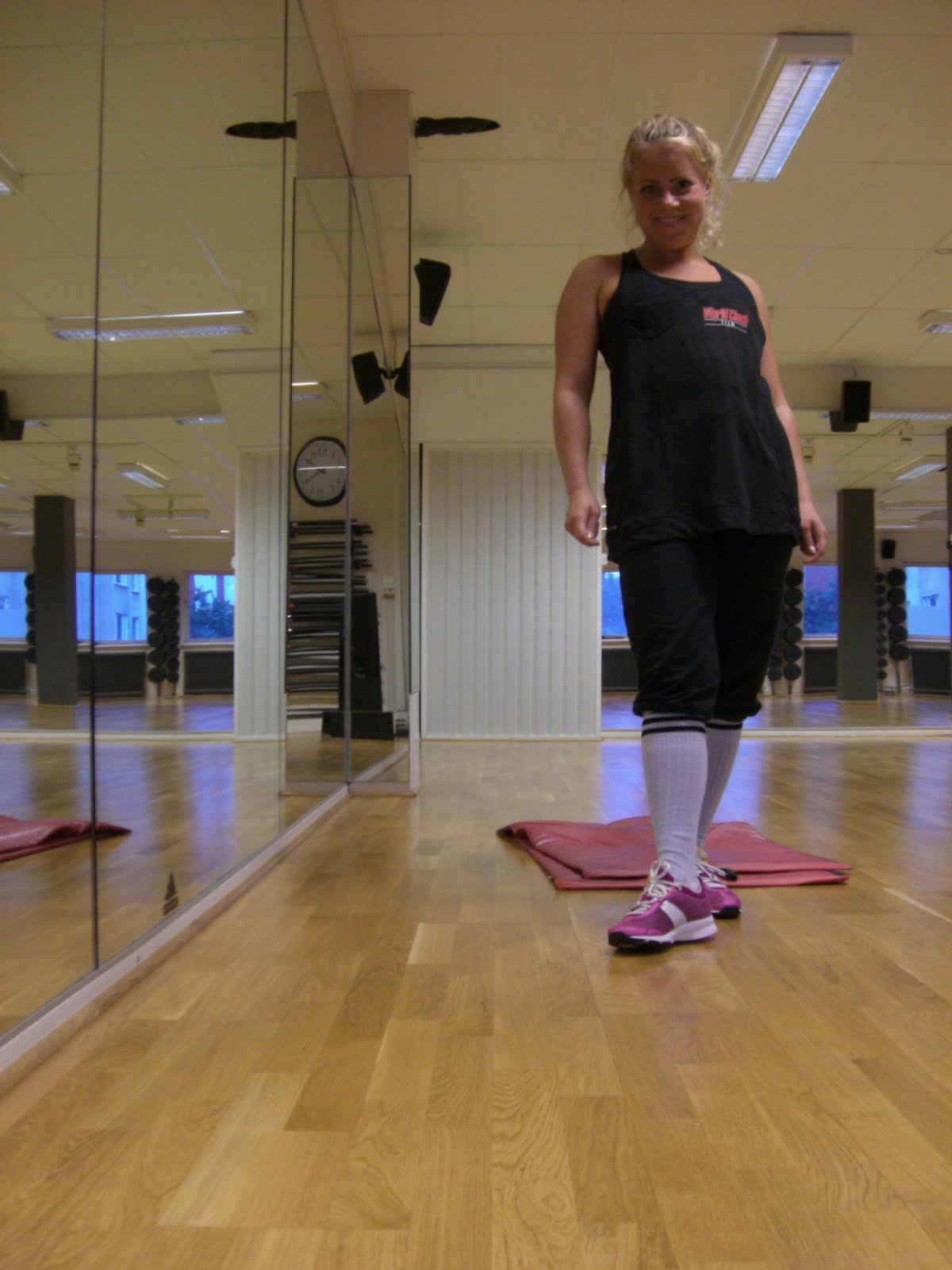 Idag hade jag på mig nya kläder frän Reebok; svart linne, byxa och träningstopp med World Class loggan.