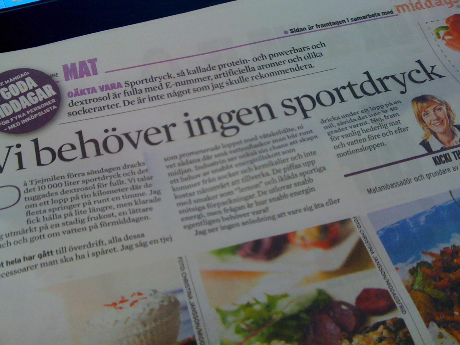 1. Dricker aldrig sportdrycker eller äter bars, proteinshakes etc… håller HELT med dig! Och jag fattade verkligen inte varför de delade ut dextrosol på Tjejmilen, hehe. Men det är klart – sponsorer och reklam! :p