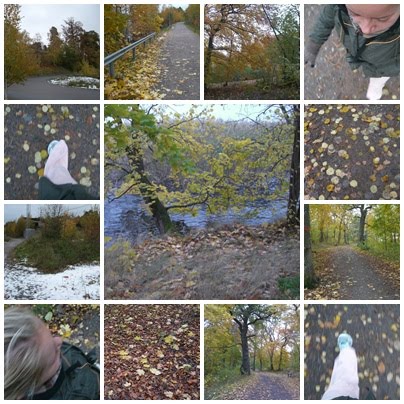 Jag startade denna lördag på ett mycket härligt sätt med en powerwalk på en timme ute i den friska höstluften. Nästan all den snö, som kom igår morse, är borta nu. Den ligger bara kvar fläckvis på vissa platser. Istället njöt jag av de vackra höstlöven, som fortfarande är kvar på de flesta träden.