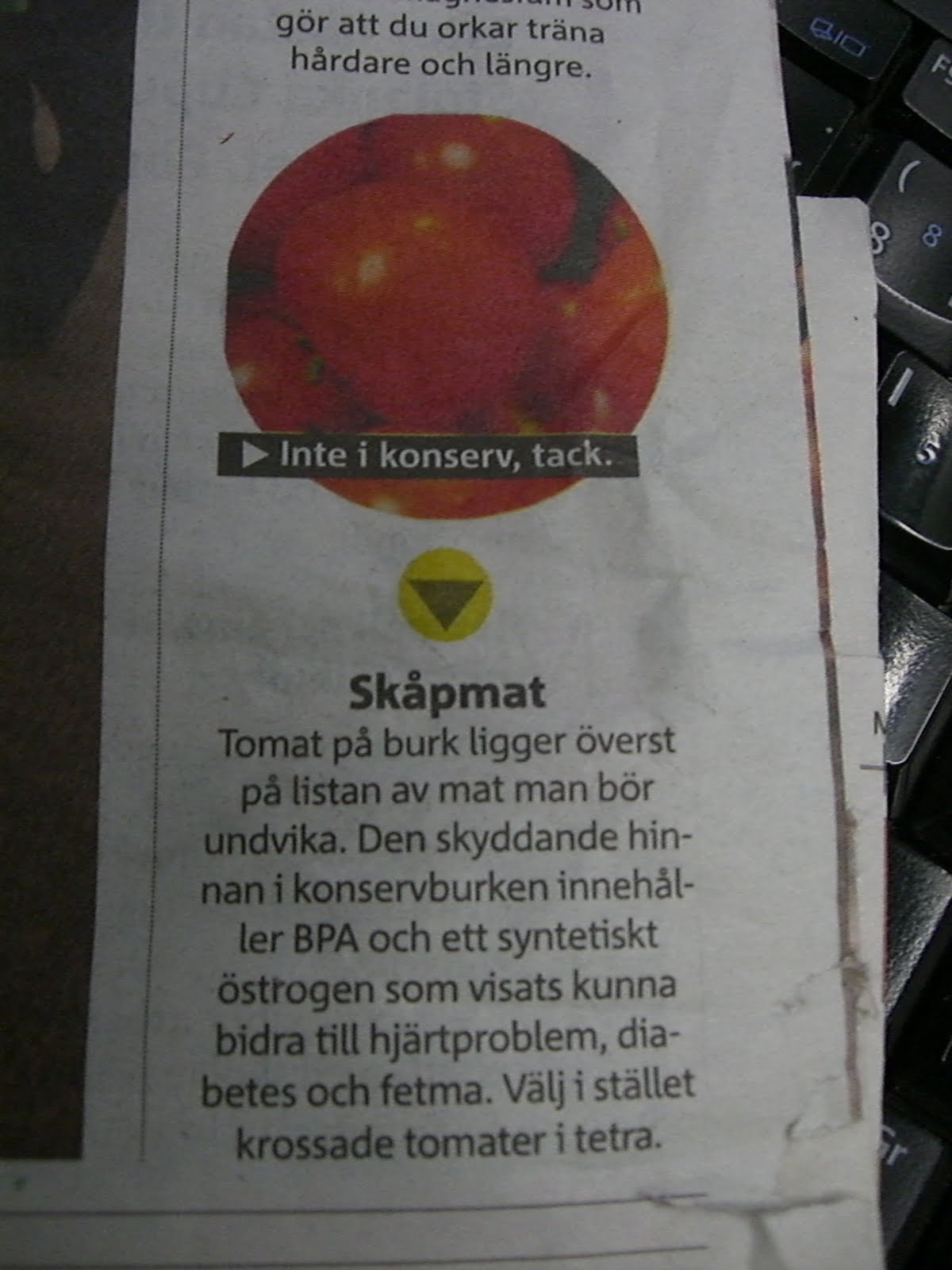 Har någon hört talas om detta tidigare? Jag undrar också om det bara gäller konservburkar som innehåller tomater? Borde det inte gälla alla slags konservburkar? Jag kommer i alla fall hålla mig till tomatkross i tetra fortsättningsvis för att vara på den säkra sidan.