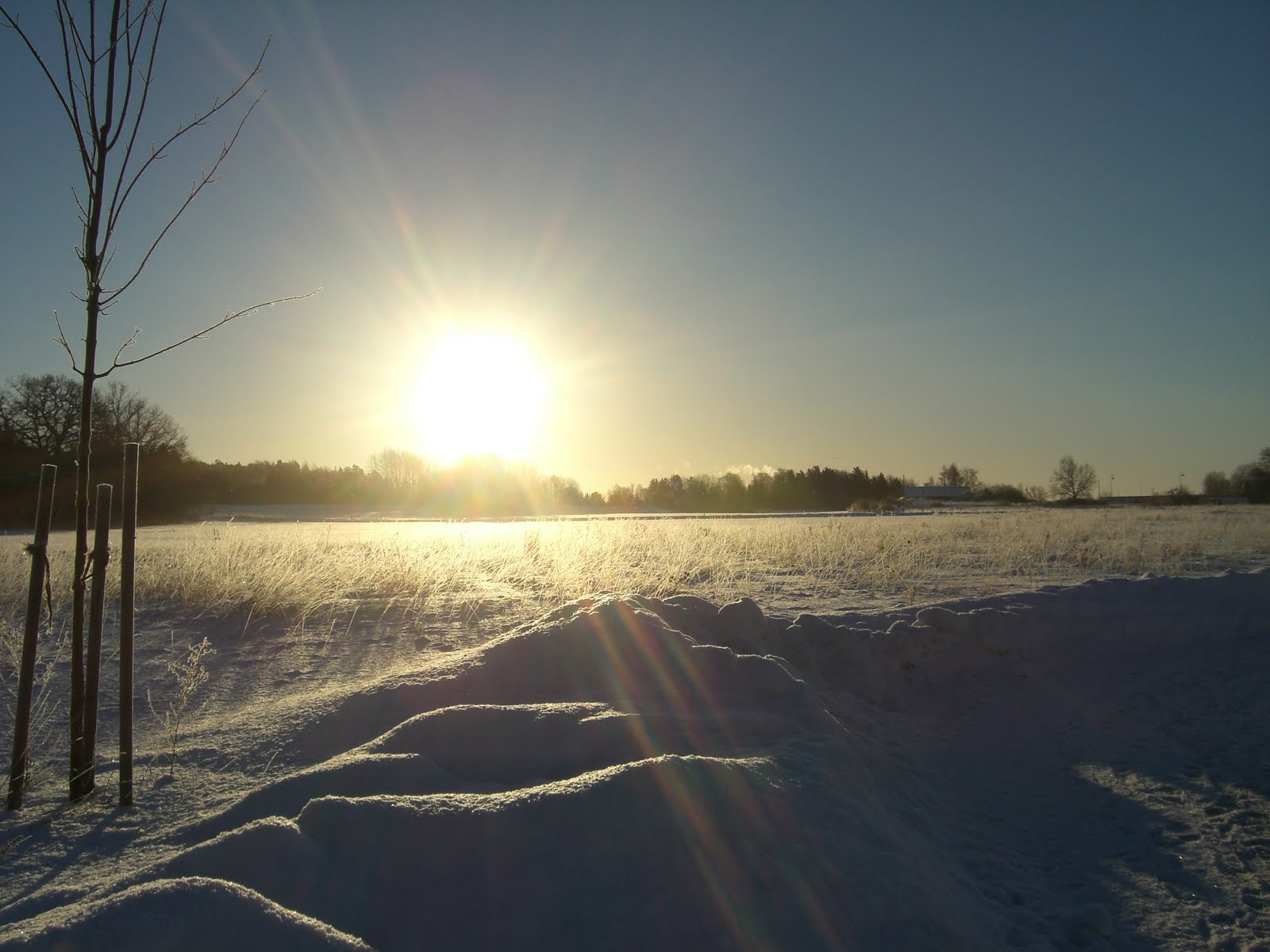 Jag förenade nytta med nöje i morse. Nyttan var att jag inhandlade det sista inför nyårsmiddagen ikväll och nöjet var att jag tog en promenad till och från affären. Eftersom vi bor en bit från affären tog det en stund och min promenad blev totalt en timme lång. Under tiden fick jag njuta av en vacker sol över det fina vinterlandskapet.