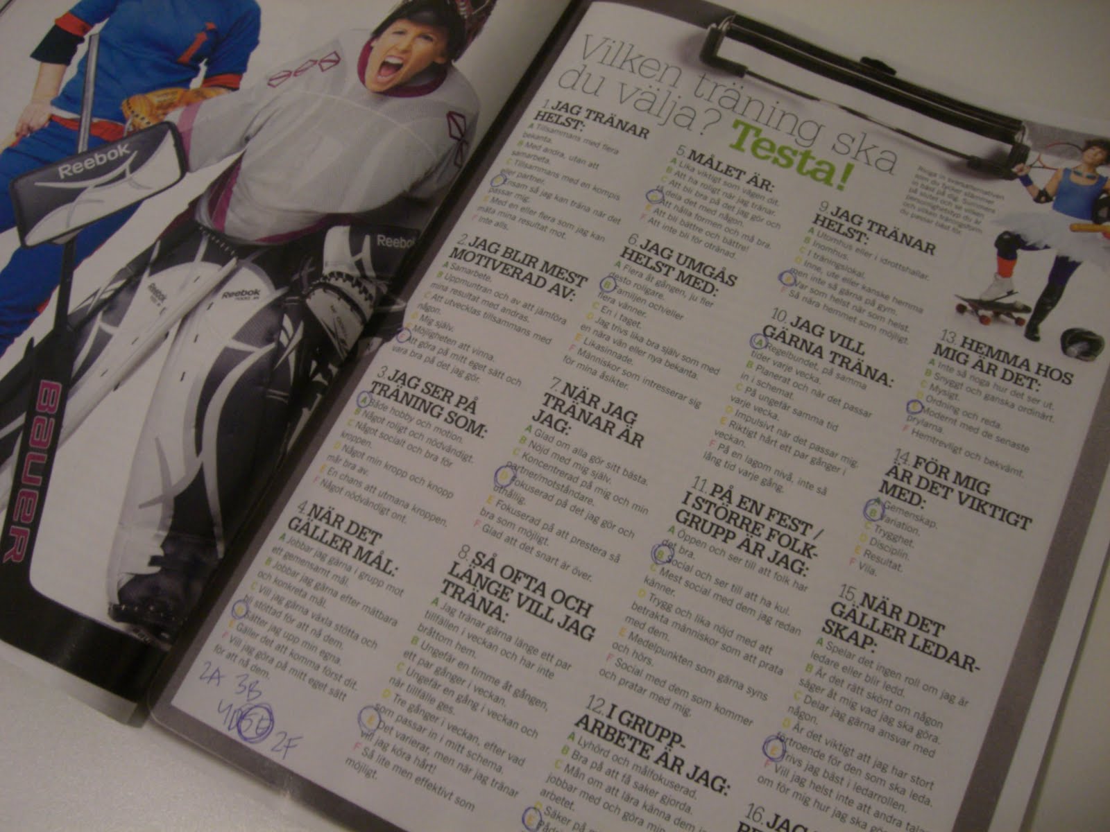 JoHo: Vore spännande att höra vilken träningstyp du blev!Malin-Charlotta: Ja, ToppHälsa finns att köpa i lösnummer. Detta senaste numret finns ute i butik nu.Malin I Form: Ja, Kalla är på framsidan.