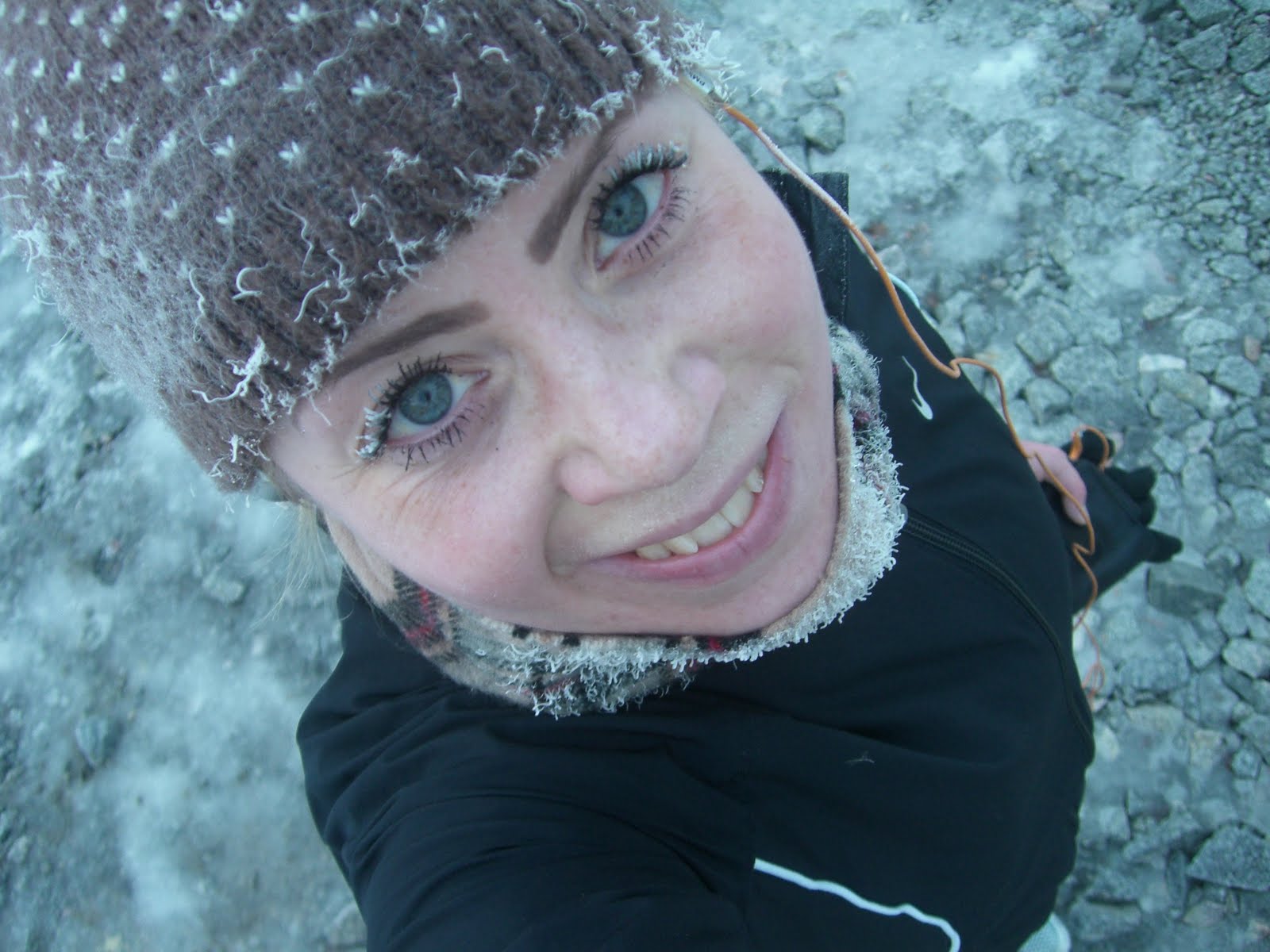 Karin%2Bglad%2Befter%2Bl%25C3%25B6pning - Skön morgonträning i månskenet61 minuter promenad och 57 minuter löpning – Vilken skön morgonträning jag har haft denna morgon! Känslan under tiden jag tränade var härlig. Det gick lätt och det var skönt att röra på benen. Känslan när jag var klar med träningen var ännu bättre! När jag kom tillbaka från mitt morgonpass hade jag snö i mascarafransarna och var härligt kall om kinderna, men varm i kroppen.