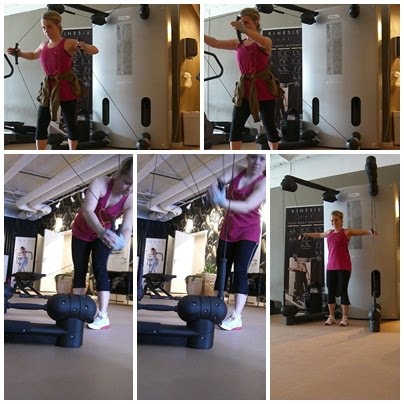 Halva passet förlade jag bland maskinerna i styrketräningsparken och halva passet höll jag till i kinesismaskinen. Jag tycker om att variera den traditionella styrketräningen med maskiner, hantlar och stång med kinesisövningar. Det är funktionell träning över det och det gillar jag! Jag gillar bålövningarna speciellt mycket. När jag tränar bål i kinesismaskinen får jag en verkligt bra kontakt och bålträningen blir effektiv. Förutom bål fick sig även bröst, rygg och axlar sig en omgång i kinesismaskinen.