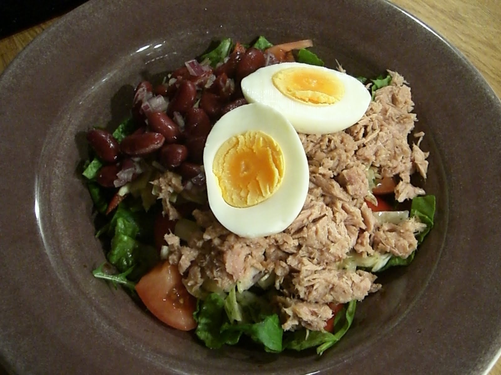 Jag har landat hemma efter en rolig och intensiv första dag på mitt nya jobb. Jag märker verkligen att alla nya intryck och all ny information gör mig tröttare än vanligt. Då var det skönt att slänga ihop något enkelt och snabbt till middag ikväll. Tonfisksallad med kokt ägg fick det bli. En rätt som jag tycker är väldigt god och som passar perfekt att äta på kvällen när man inte behöver så mycket kolhydrater, utan fokus läggs på protein och fett.