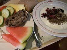 Som vanligt på kryssningsbåtar var det bufféer som gällde till alla måltider. Fördelen med det är att alla kan välja det de tycker är godast. Jag blev glatt överraskad över efterrättsbuffén till middagen där det fanns både färsk frukt och en osötad bärkvarg. Frukostbuffén var som vanligt det godaste!