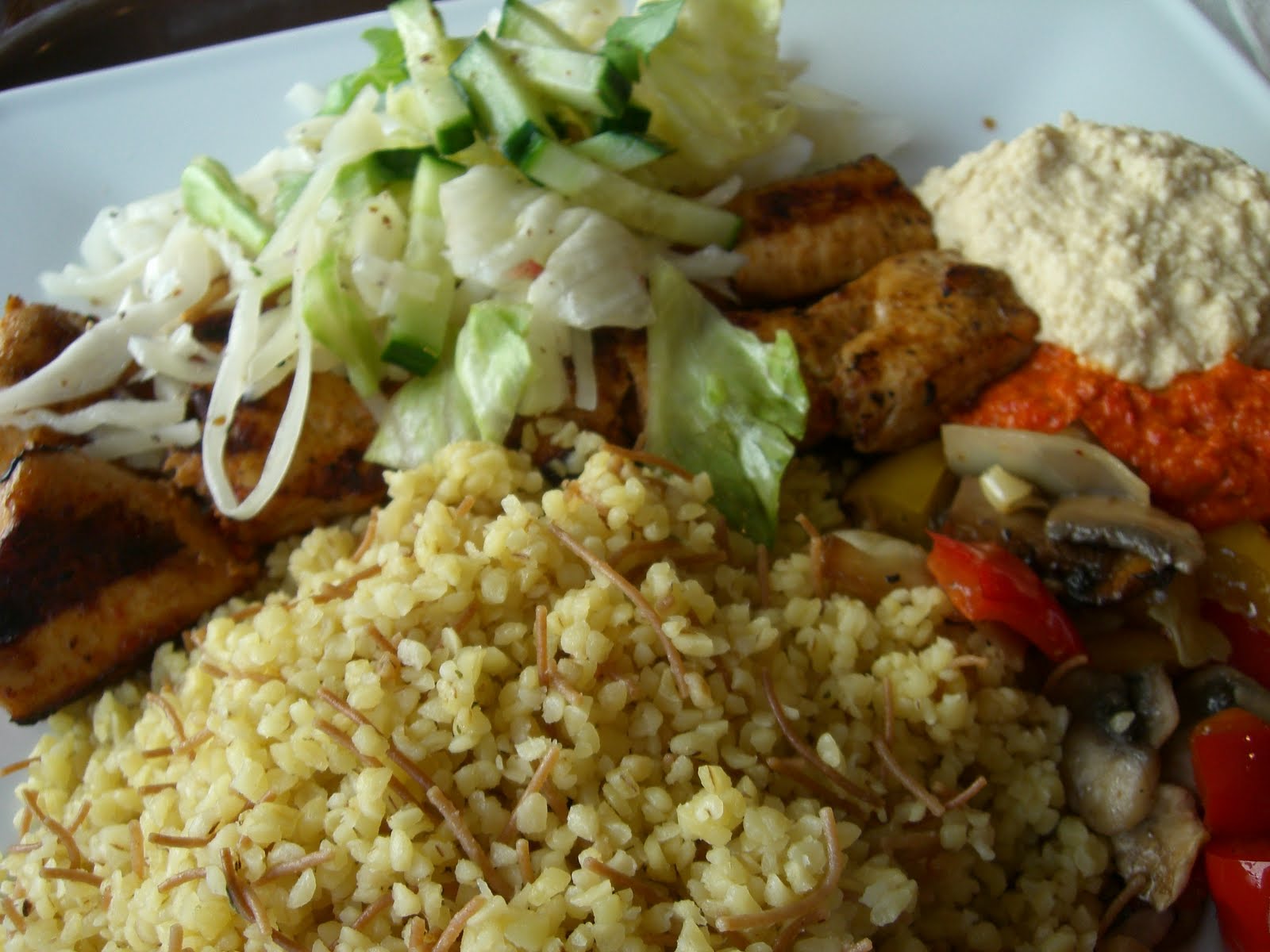 Jag valde kyckling, bulgur och hummus och var mycket nöjd med valet. Det var gott och mättande. Det jag har svårt att förstå är varför man alltid får så mycket av kolhydraterna på dessa typer av restauranger? Jag fick ett stort berg med bulgur och orkade inte på långa vägar att äta upp allt. Men, visst. Är man en stor och stark manlig kroppsbyggare så behöver man säkert äta så mycket för att bli mätt.