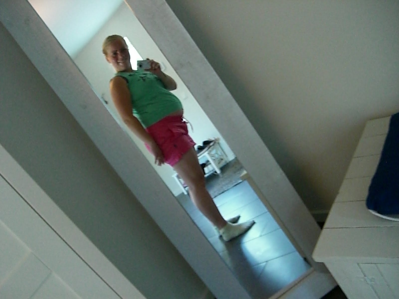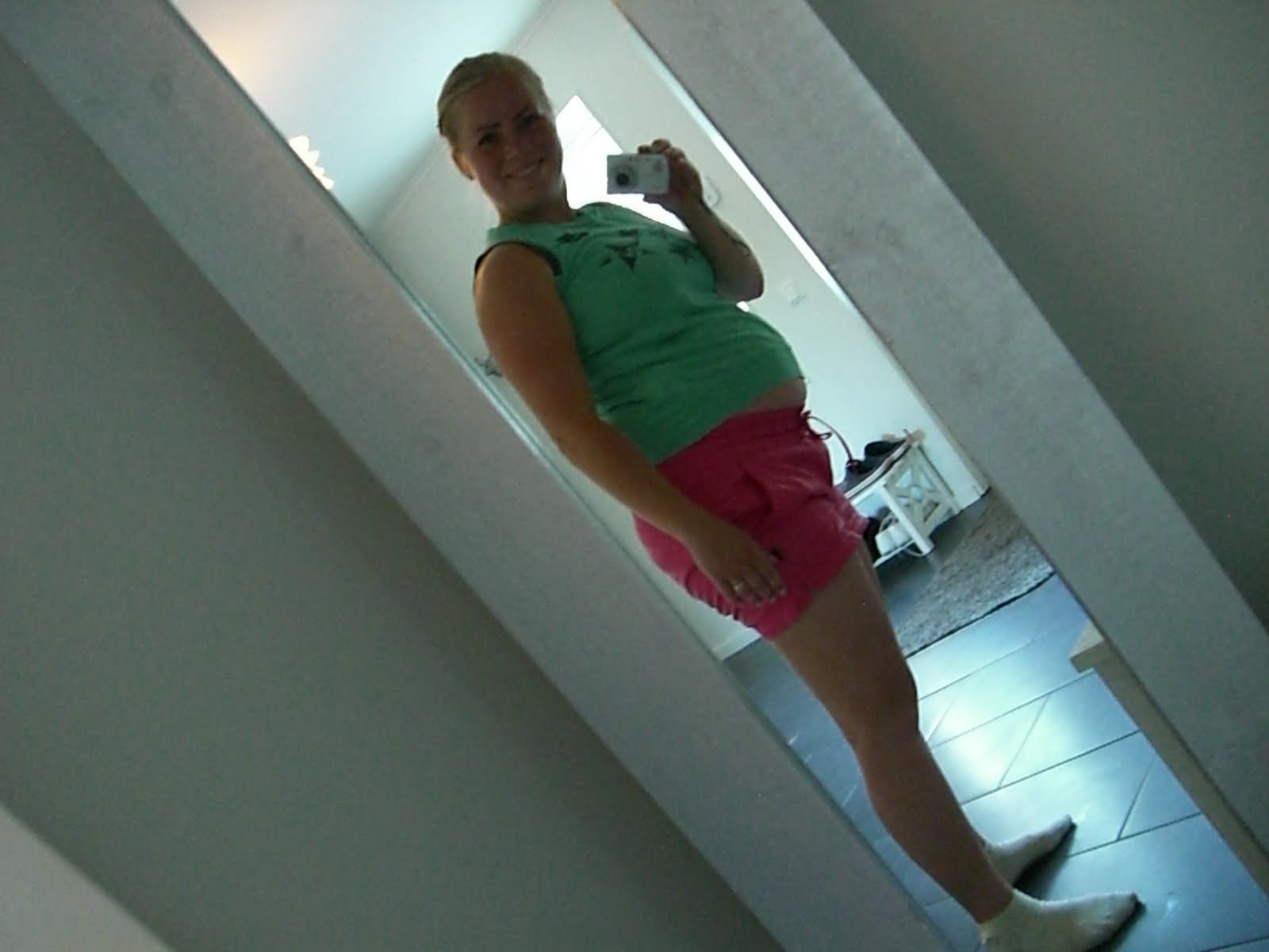 Mitt träningslinne för dagen börjar visst bli lite litet… Men eftersom jag tränade hemma och ingen behövde se mig tyckte jag att det var ok att magen putade ut lite.