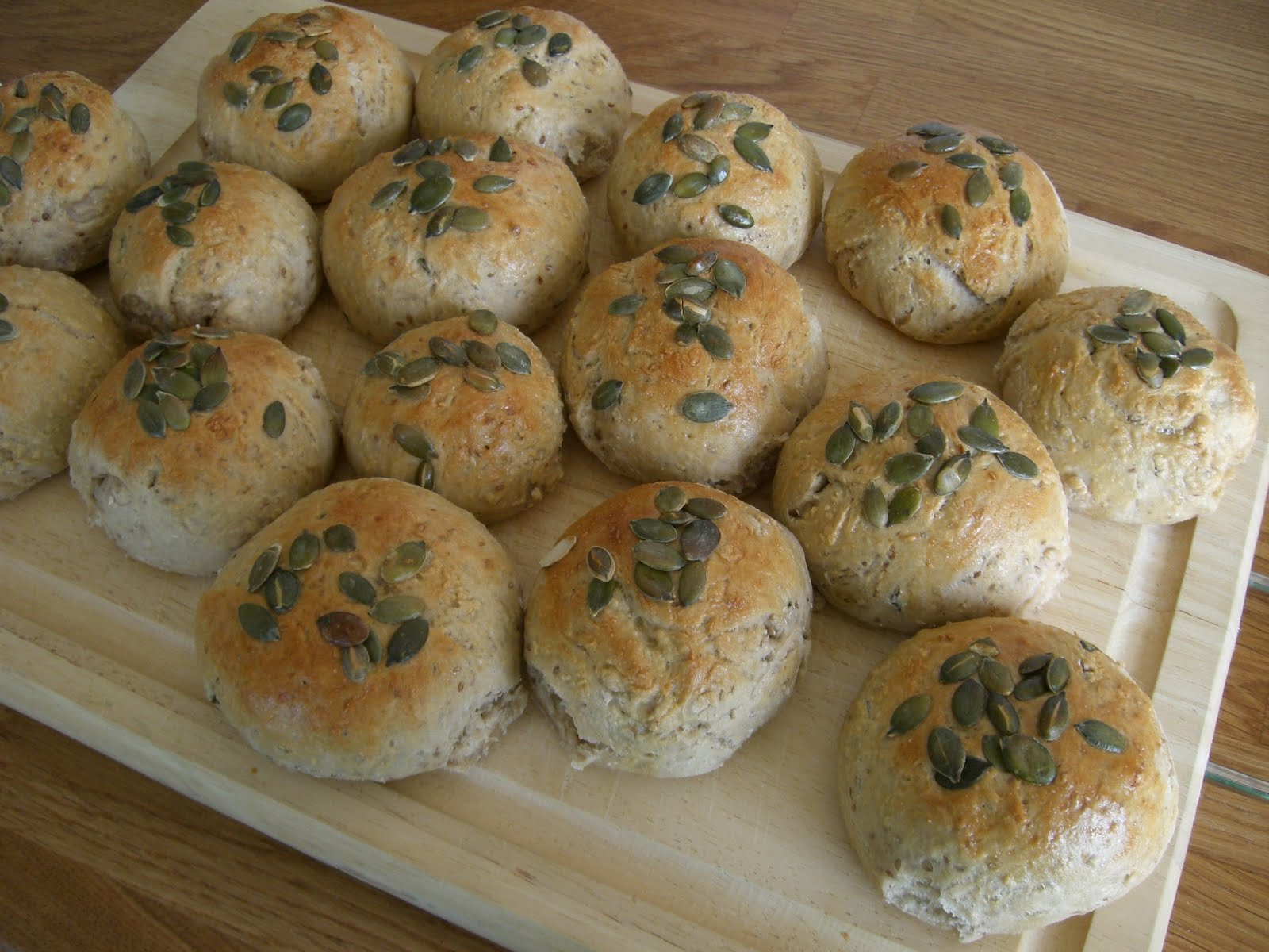 Mums, gott med hemmagjort och nybakat bröd! De med pumpakärnor på såg riktigt goda ut 🙂