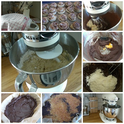 Igår invigde jag min nya Kitchen Aid köksmaskin genom att baka kanelbullar och Leilas choklad- och kokosrutor.