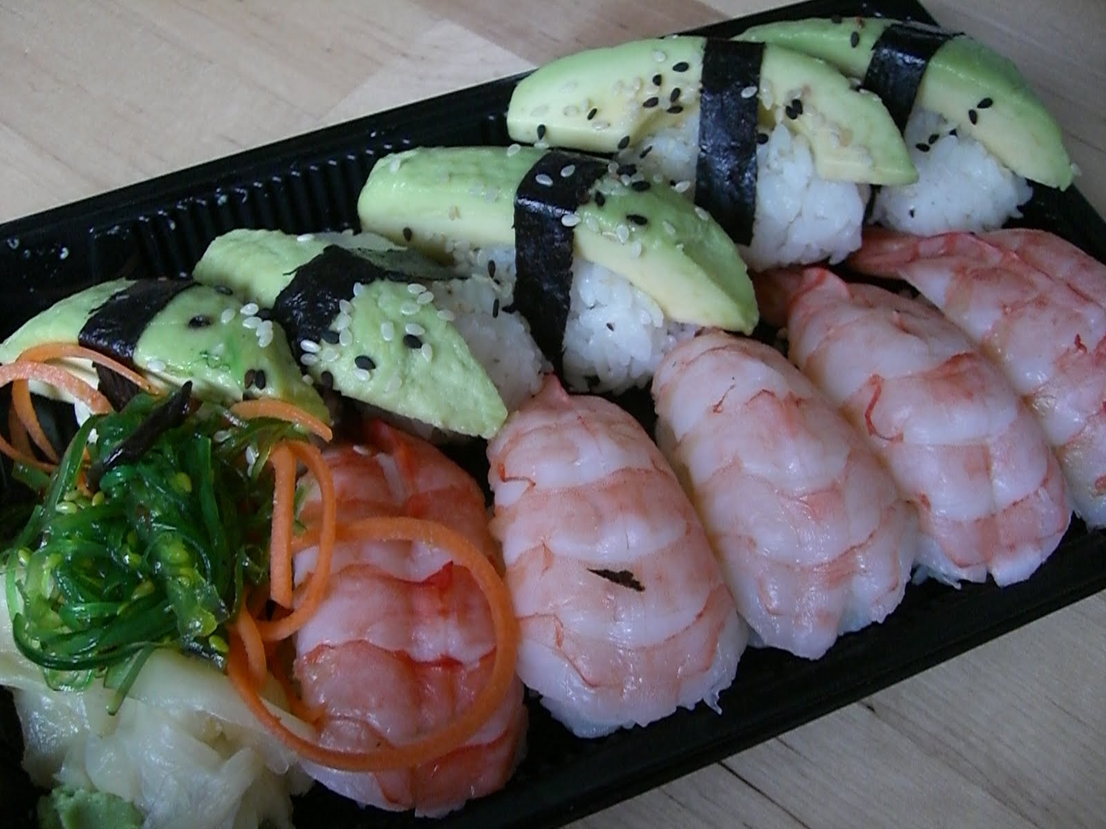 Bild: Min ”mammasushi” med räkor och avokado som jag fick hos Moa. Tack för en trevlig lunch, Moa!