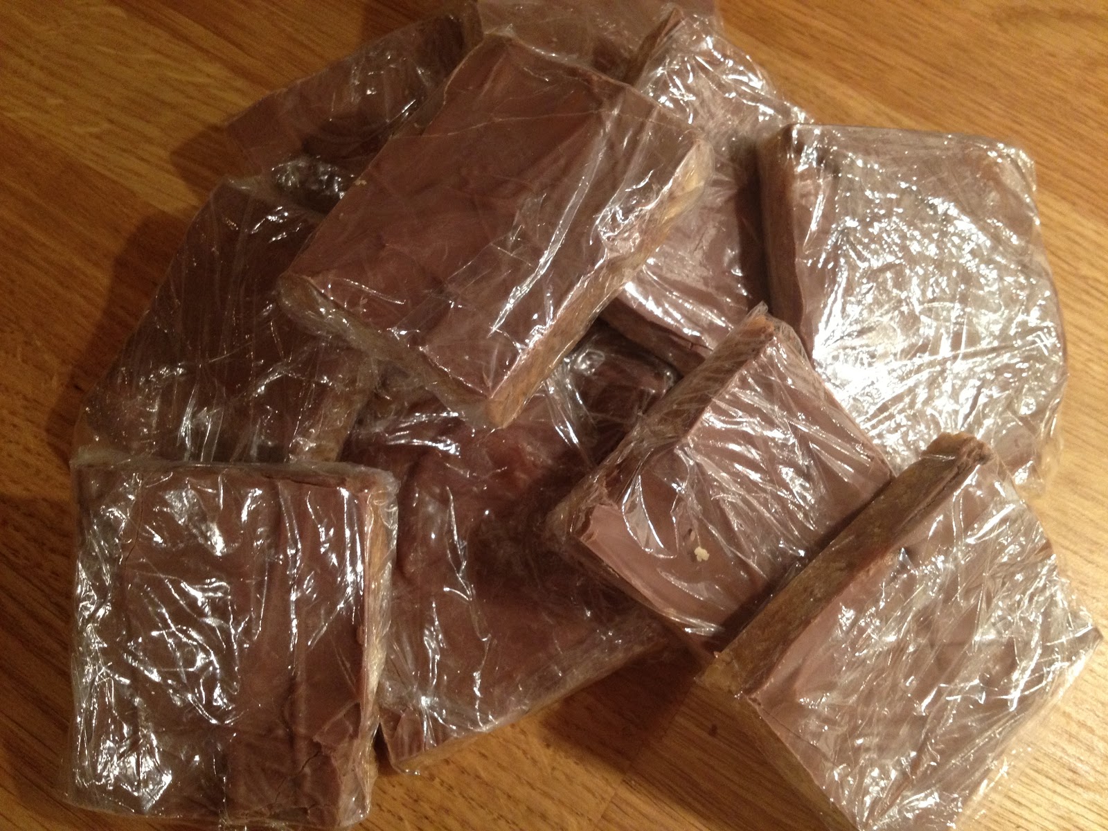 När snickerskakan är stel; skär upp den i bitar och njut!