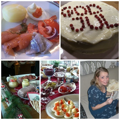 Min förrättstallrik bestod endast av goda nyttigheter som sill, lax, kokt potatis, tomatsallad och ägg. Till varmrätt åt jag hemlagade köttbullar, potatis och knäckebröd. Senare på dagen var jag dock inte lika nyttig då jag fikade av min hembakade mjuka pepparkaka med glasyr. Mycket god, kan jag lova!