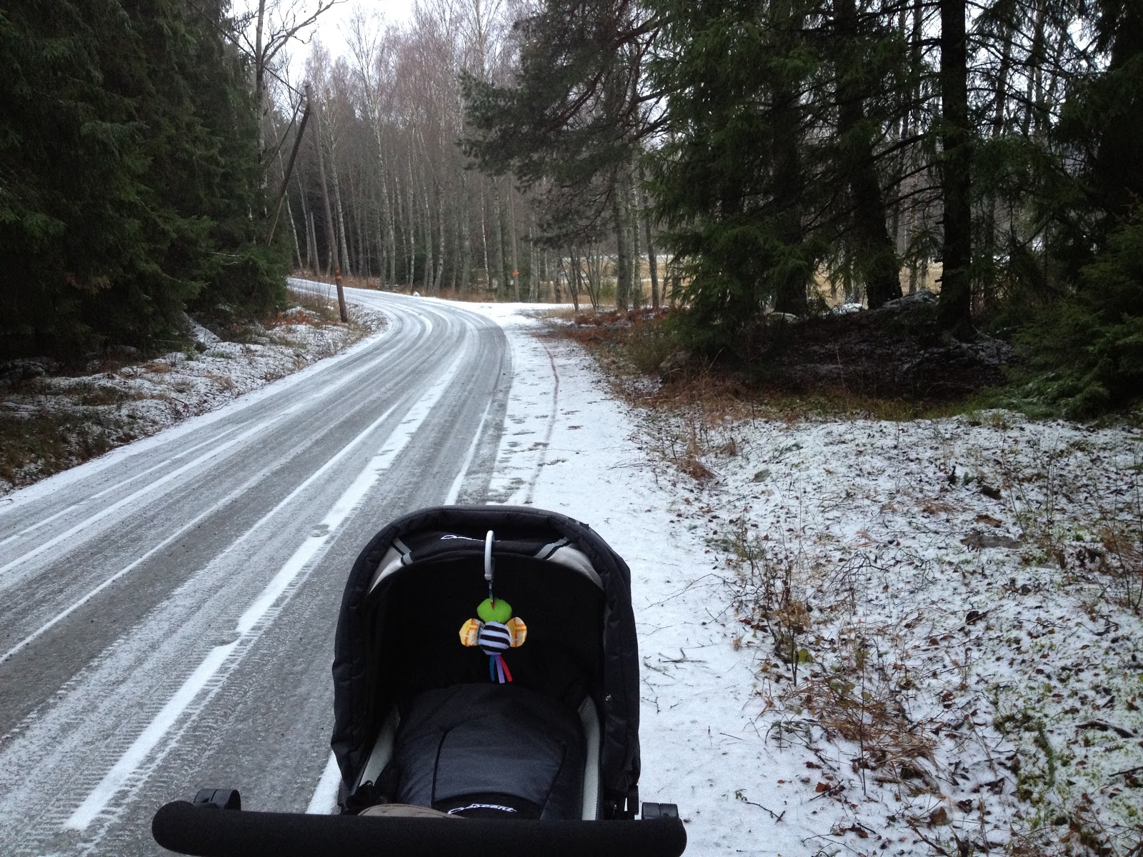 Strax efter att det hade ljusnat gav jag mig ut i morse på promenad. Klockan var 8.30 och nu när jag är mammaledig är det tidigt för mig att ge mig ut på promenad. Innan jag fick barn och när jag jobbade brukade mina morgonpromenader ske vid fem- eller sextiden på morgonen. Men nu när jag ammar ett antal gånger på natten är det skönt att sova lite längre på morgonen (i morse till 06.30) och sedan tar det en bra stund innan jag och Wilmer är redo att ge oss ut.