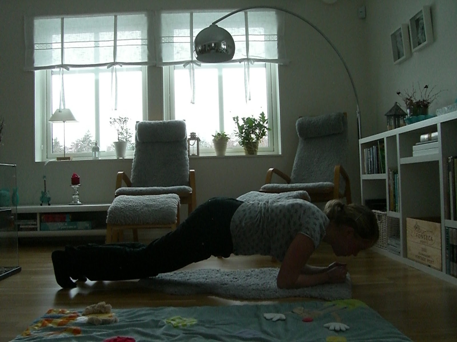 | Jag tränar plankan. Efter 3 x 1 minut orkade jag inte hålla rätt teknik längre… |