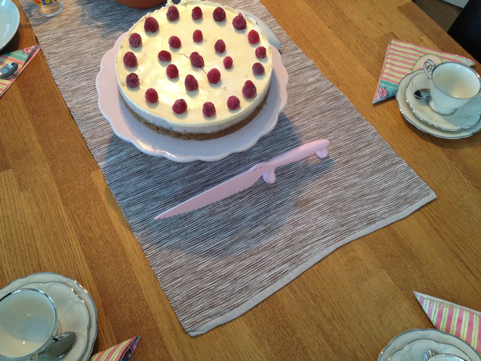 Till gårdagens fika bjöd vi på cheescake istället. Till det hembakade kanelbullar och Ballerina Pepparkaka, vilket vi hade idag också.