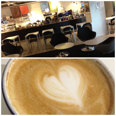 Därefter mötte jag upp med dessa två träningsbloggande tjejerWayne’s Coffee. Vi spenderade en skön stund tillsammans över en kaffe latte gjord på lättmjölk.