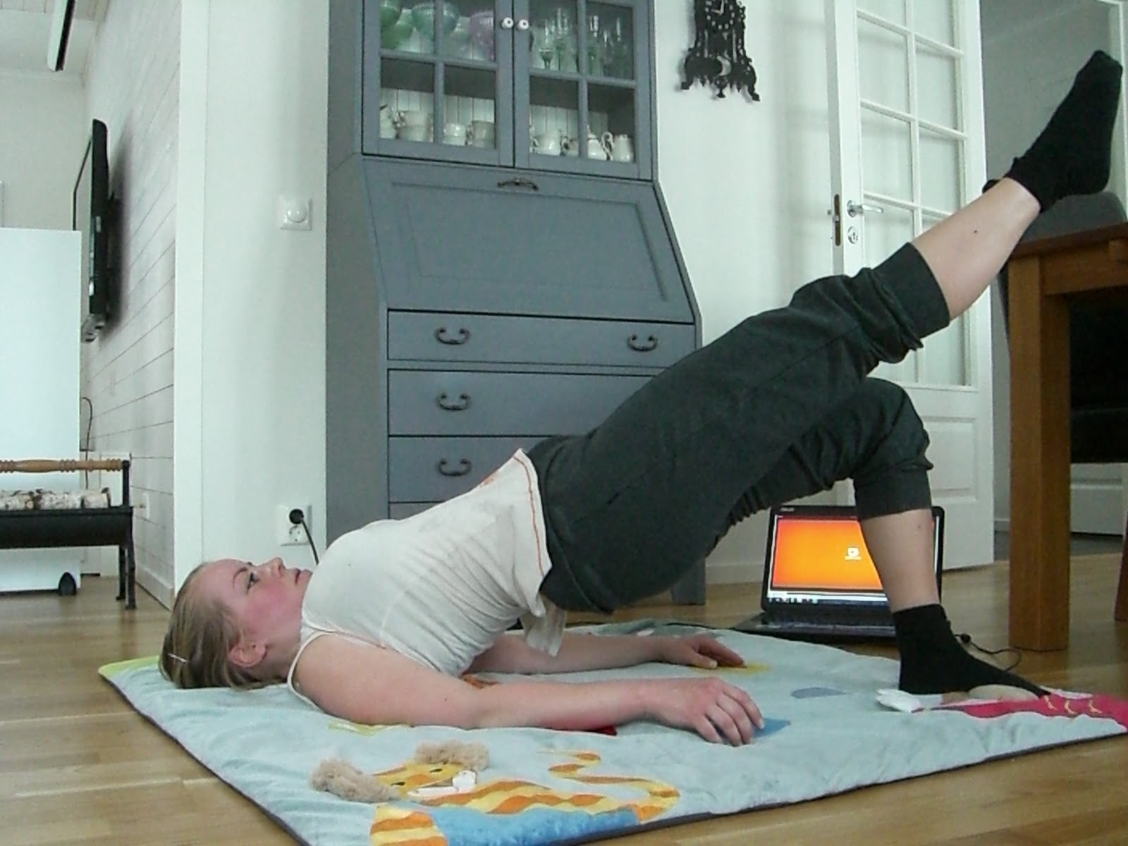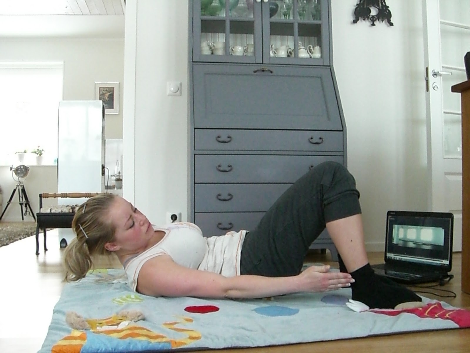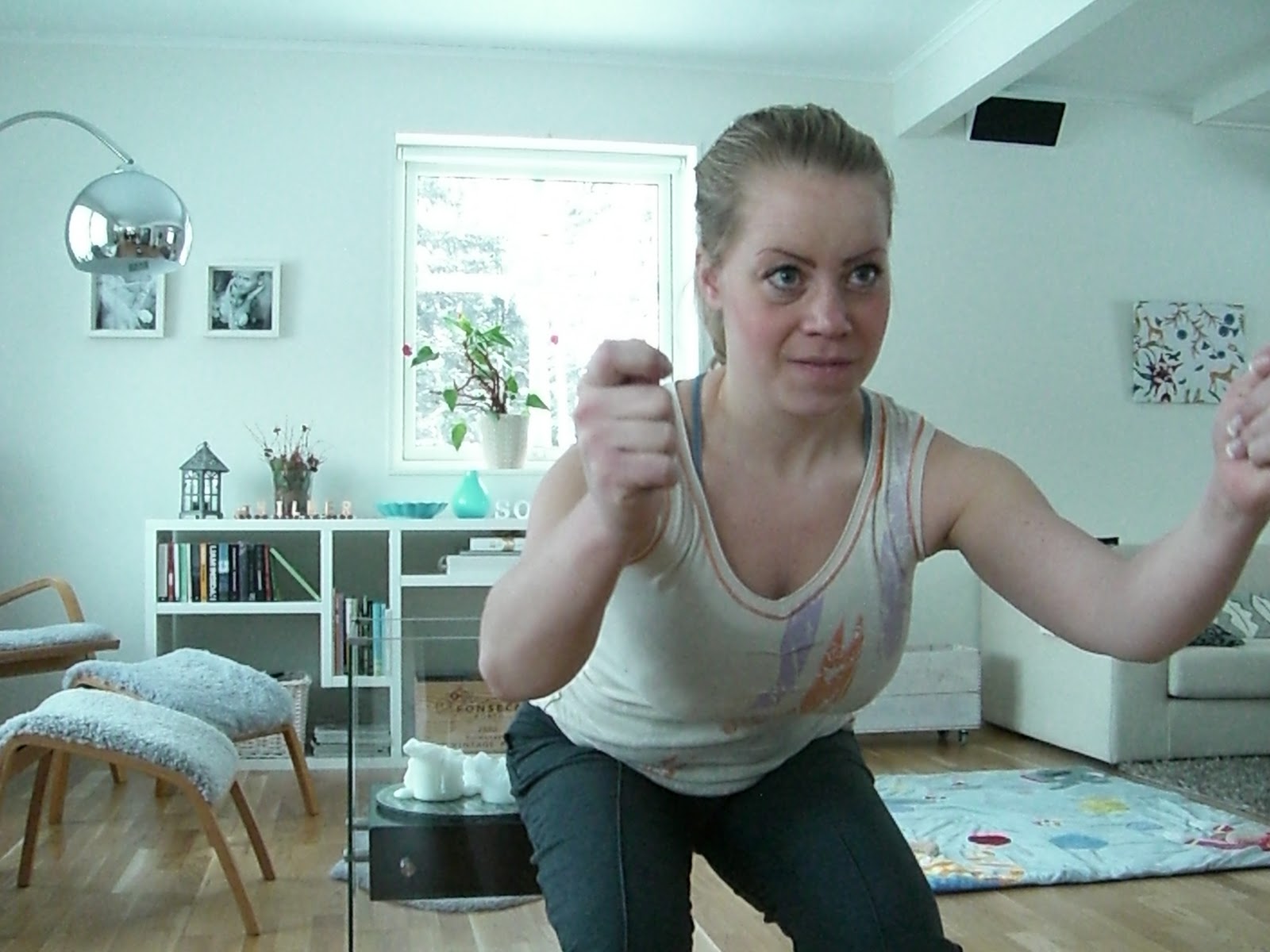 När jag hade kört igenom koreografin, som är ca 25 minuter lång, var jag fortfarande sugen på lite mer träning för rumpa och ben. Så jag körde två låtar från en annan koreografi. Efter totalt åtta booty-låtar var jag redo att träna lite coremuskulatur.