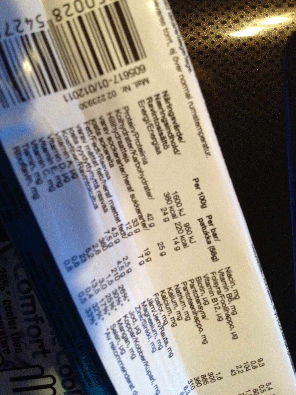 naturdiet-2 - Jag slapp äta mitt akutmellisAtt jag slapp äta denna chokladbar är ingenting jag sörjer eftersom den snarare borde klassas som ett godis än ett mellanmål. Jag gav denna chokladbar halvt godkänt för ett tag sedan när jag analyserade vad en bar bör innehålla och inte innehålla för att klassas som ok näringsmässigt. Jag ansåg då att denna bar från Naturdiet var ett ok val som mellanmål. Men nu när jag tittar på innehållsförteckningen och ser att 18% är mjölkchoklad och hela 33% är sockerarter ändrar jag mig.