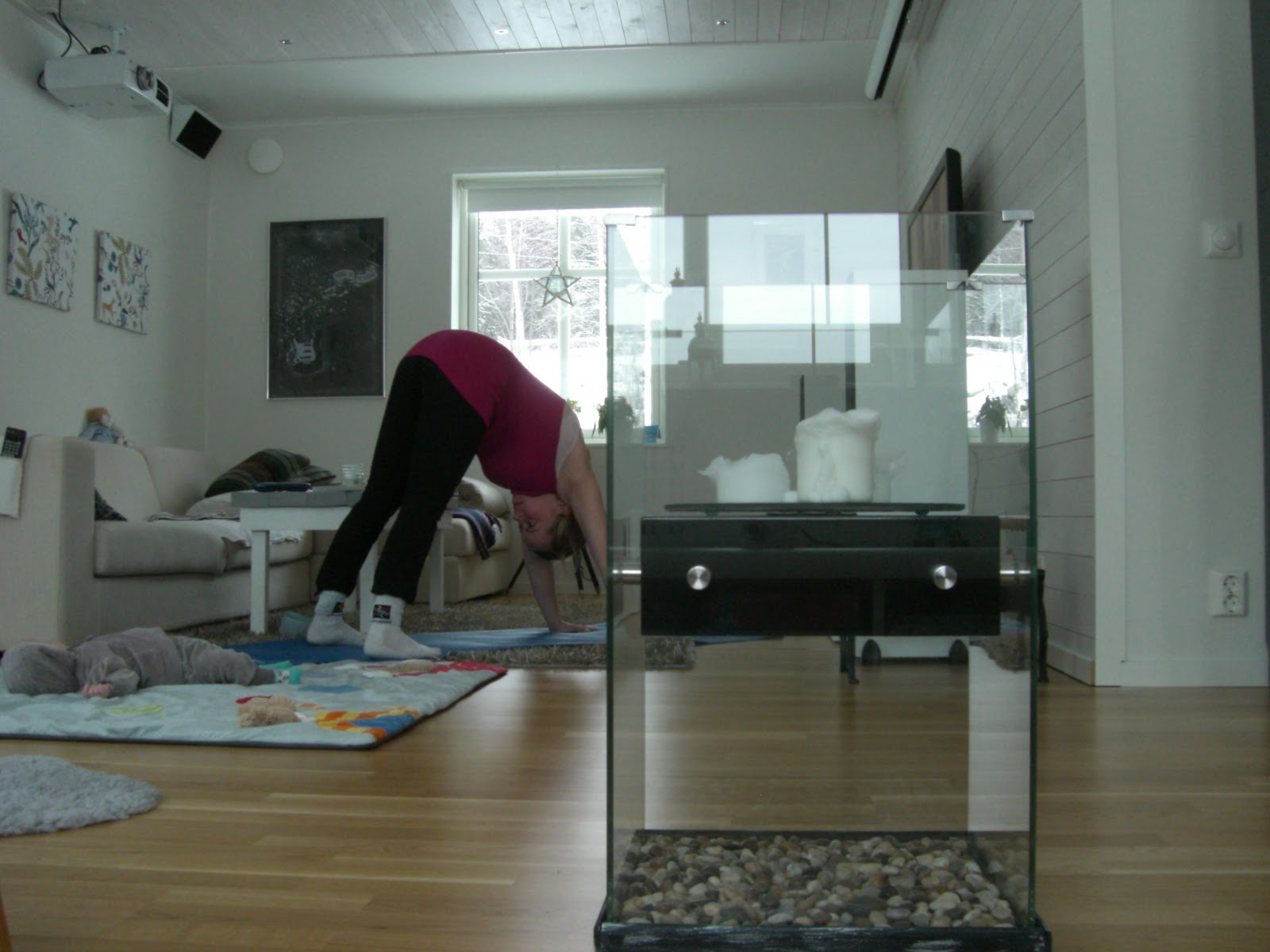 Så mycket mindfulness-träning för insidan blev det dock inte då jag fick avbryta några gånger för att ploppa i nappen för min lilla åskådare. Kanske var det på grund av det eller det ljusa rummet eller för att jag inte kunde sluta tänka på diverse saker som störde min närvaro i stunden? I vilket fall hoppas jag få till bättre närvaro nästa gång jag yogar.