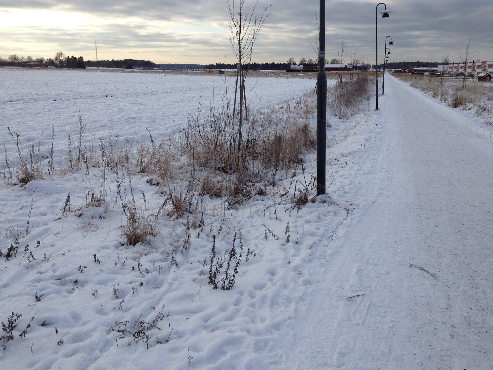Idag hade vi tid för läkarbesök på BVC. Att gå dit tar ungefär 25 minuter enkel väg. Men eftersom jag ville att min promenad skulle bli längre än 50 minuter så valde jag att gå en rejäl omväg dit och en liten omväg hem. På så sätt skrapade jag ihop nästan en och en halv timmes promenad och över 10 kilometer istället.