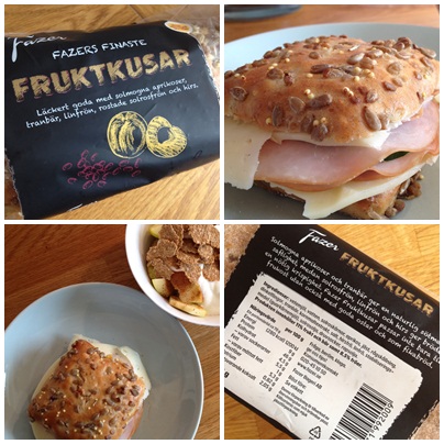 Men nu till gårdagens morgon istället. Då smakade jag nämligen Fazers nya bröd Fruktkusar till frukosten. Detta bröd har mycket torkad frukt, frön och hirs i degen. Jag gillar frukt och frön i bröd och detta bröd var inget undantag. Mycket gott, är mitt betyg på det.