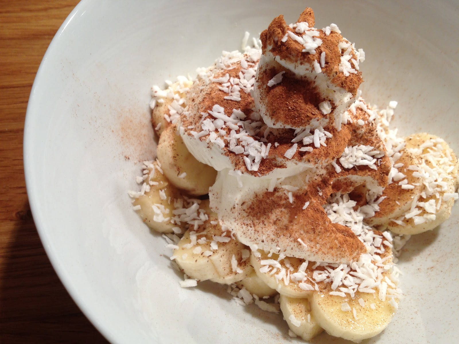 Dagens mellanmål bestod av banan, lättkesella, kanel och ja just det; kokos. Galet gott!