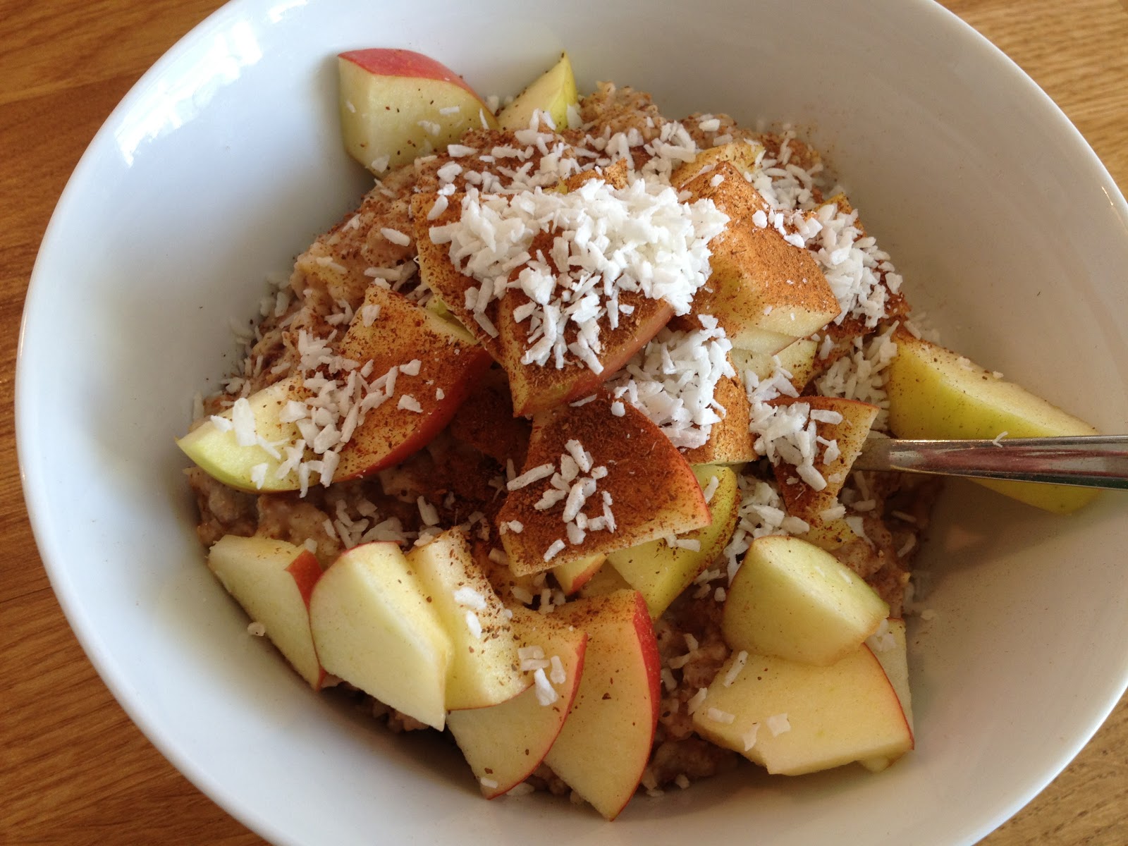 Något jag tycker är gott att ha i med är en stor sked med jordnötssmör!! Gott med rivet äpple och kokos … 😛