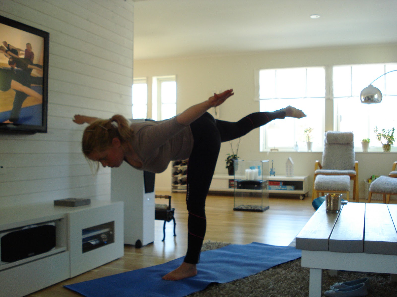 Min yogastund hemma blev riktigt lyckat. Wilmer var trött efter massagen så fastän han hade sovit i vagnen hela tiden under promenaden somnade han om direkt efter amningen hemma. Jag fick lugn och ro och kunde yoga i 35 minuter utan att bli störd. Vilken mammalyx!